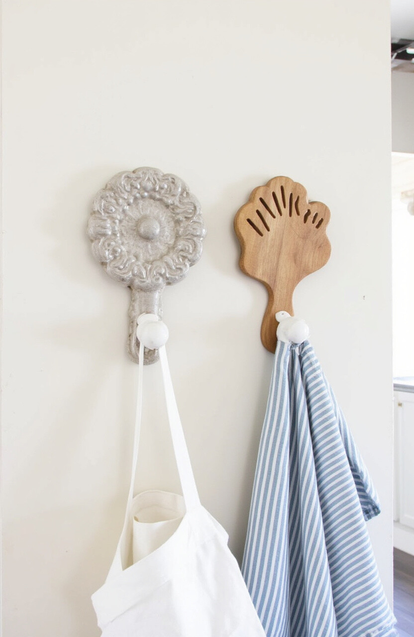 Install decorative wall hooks for aprons, towels, or utensils. Choose hooks that match your kitchen’s style, like rustic wood or sleek metal. They add functionality and flair.