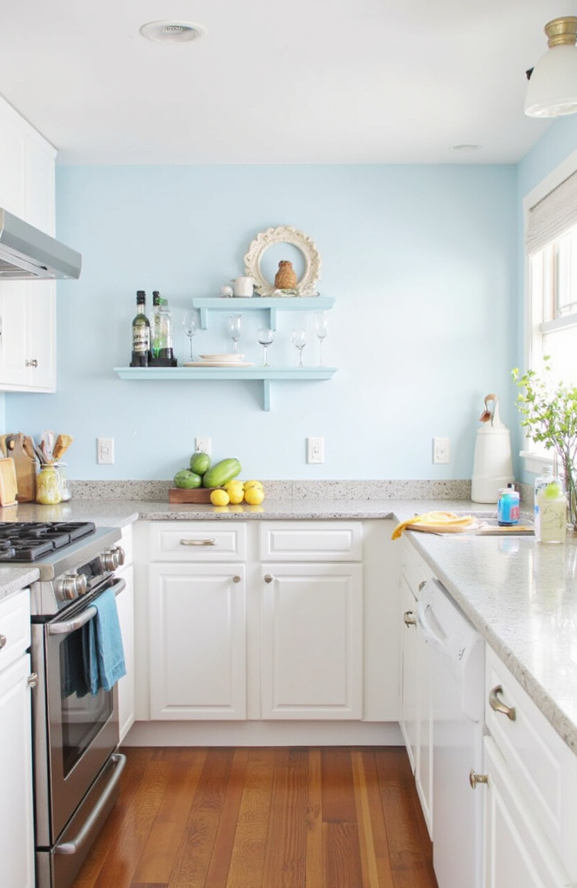 Give your kitchen walls a fresh coat of paint in a light, airy color. Soft blues or pale yellows can brighten the space. These colors can make a small kitchen feel larger and more open.