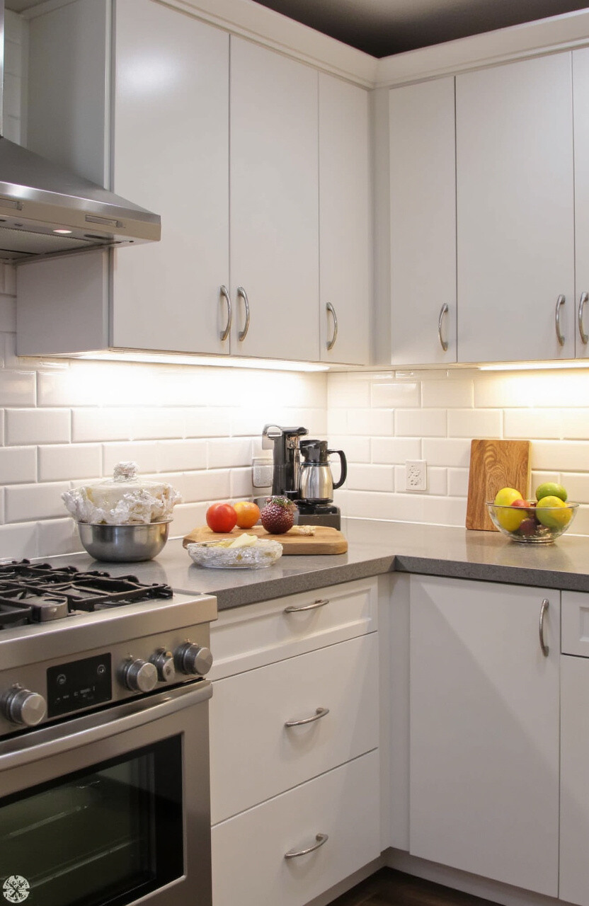 Add under-cabinet lighting to illuminate your countertops. This not only adds functionality but also creates a cozy ambiance in the evening. LED strip lights are energy-efficient and easy to install.