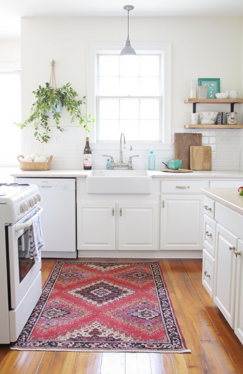 Place a colorful rug in front of the sink or stove for a splash of color. Choose a washable material for easy cleaning. A rug adds warmth and personality to the kitchen.