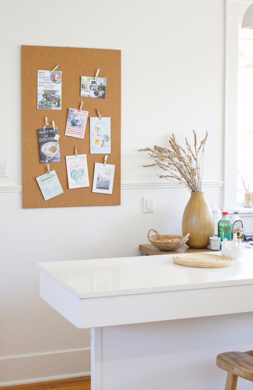 Create a mood board on a corkboard or pinboard. Pin recipes, photos, or inspirational quotes. It’s a personal touch that can change with your mood or seasons.