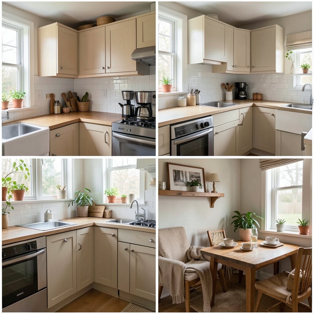 Natural light is one of the best gifts in a small kitchen. It makes colors look better and helps the whole room feel fresh.