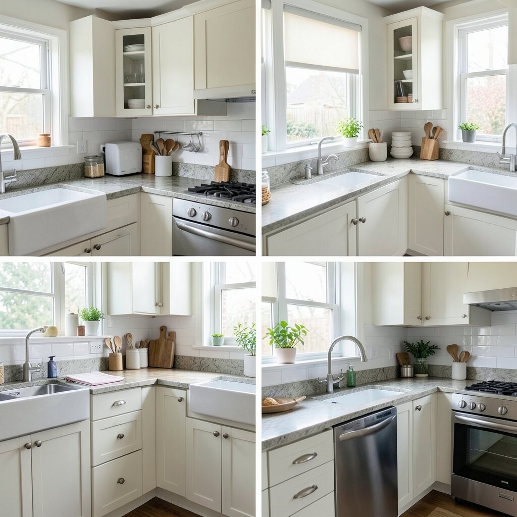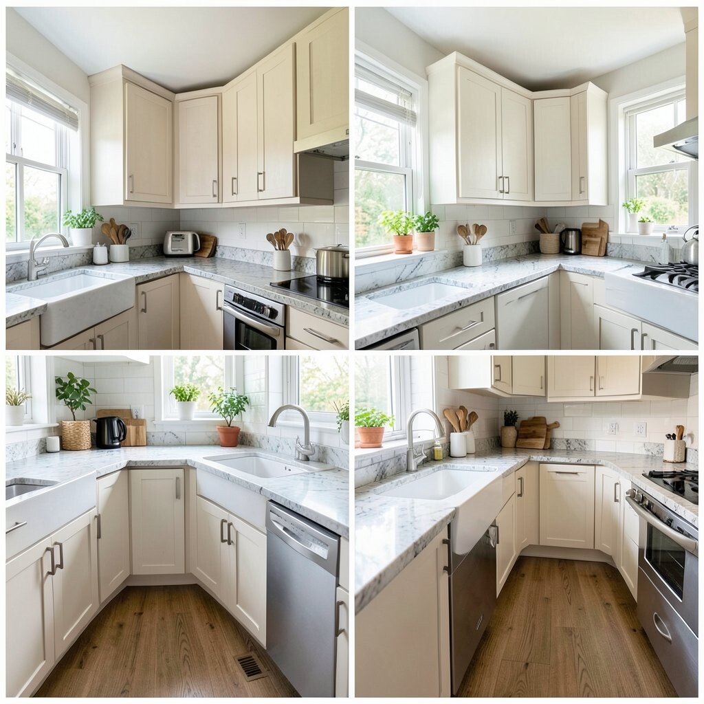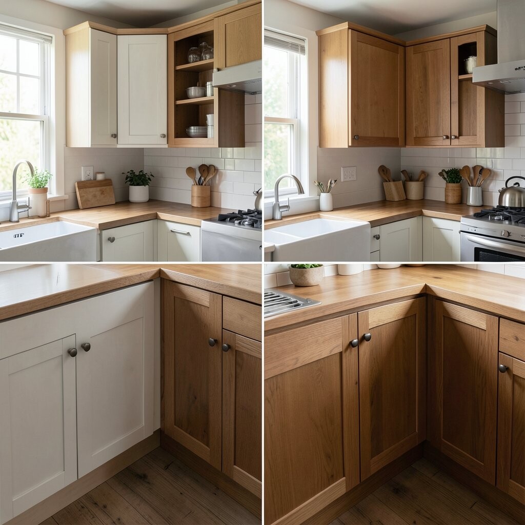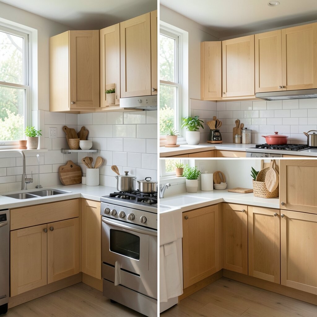 Before, the corners were wasted and full of random items. After, smart corner shelves, a lazy Susan, and pull-out trays made every inch count. It feels neat, clever, and a little bit magical.