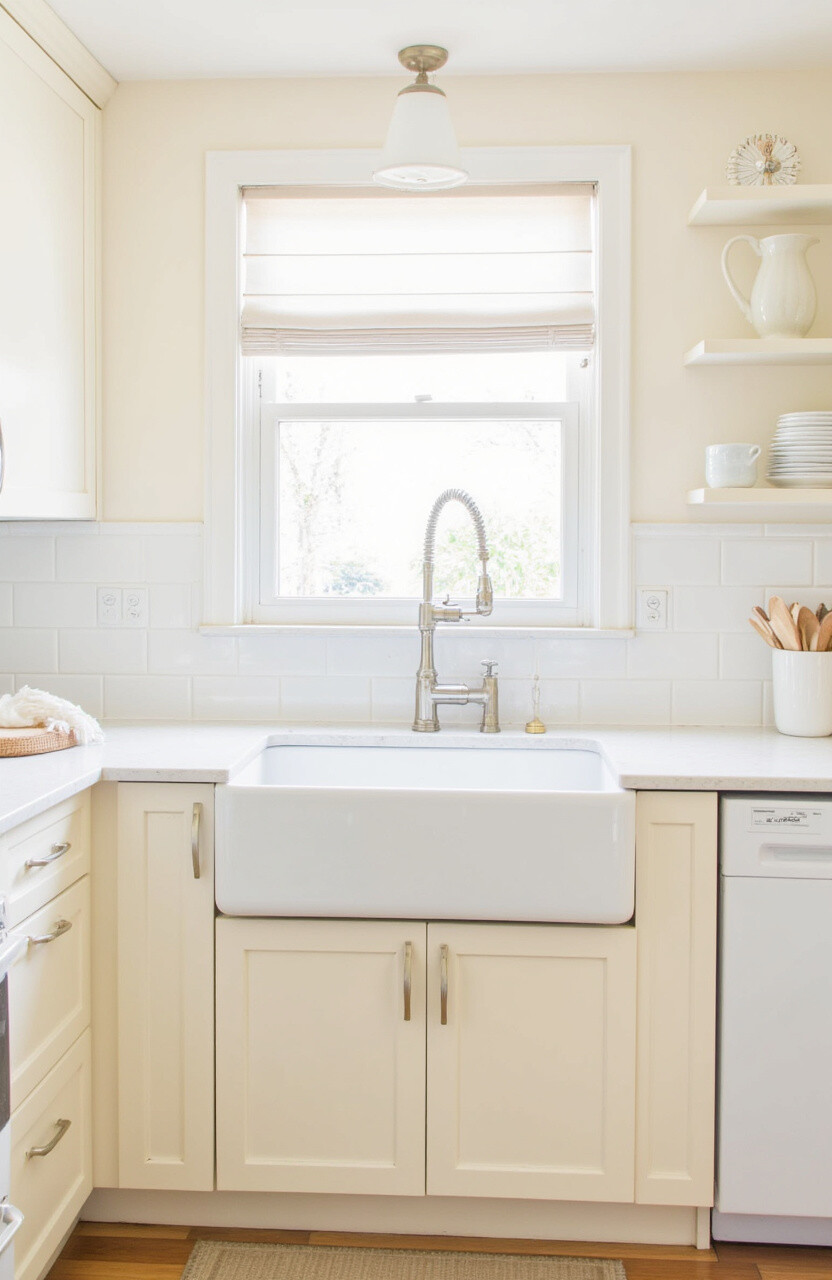 Soft Butter is a warm, inviting color that brightens up the kitchen. It adds a cheerful touch without being too bold.