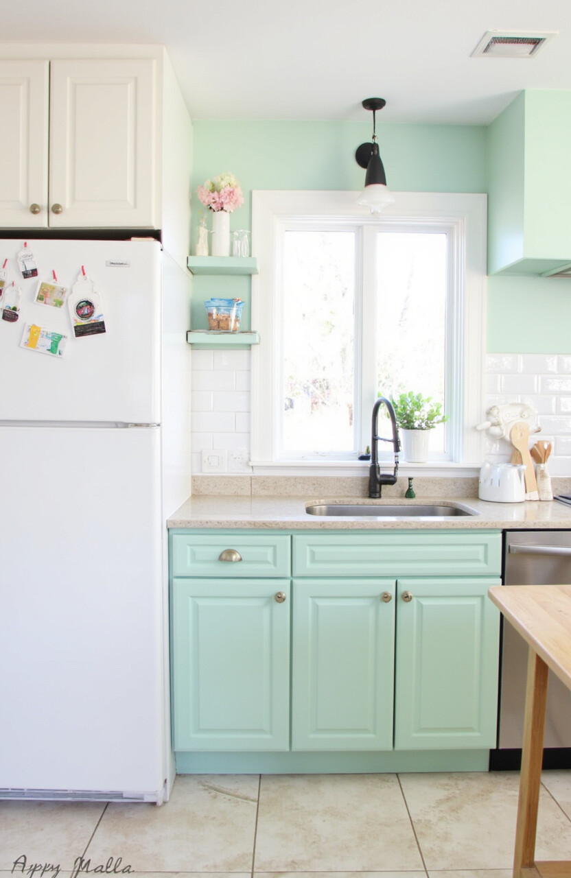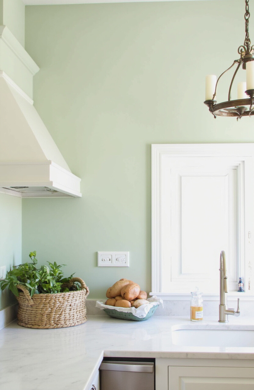 This shade works wonders with white cabinetry or grey countertops. It’s calming and refreshing, making it perfect for a soothing kitchen vibe.
