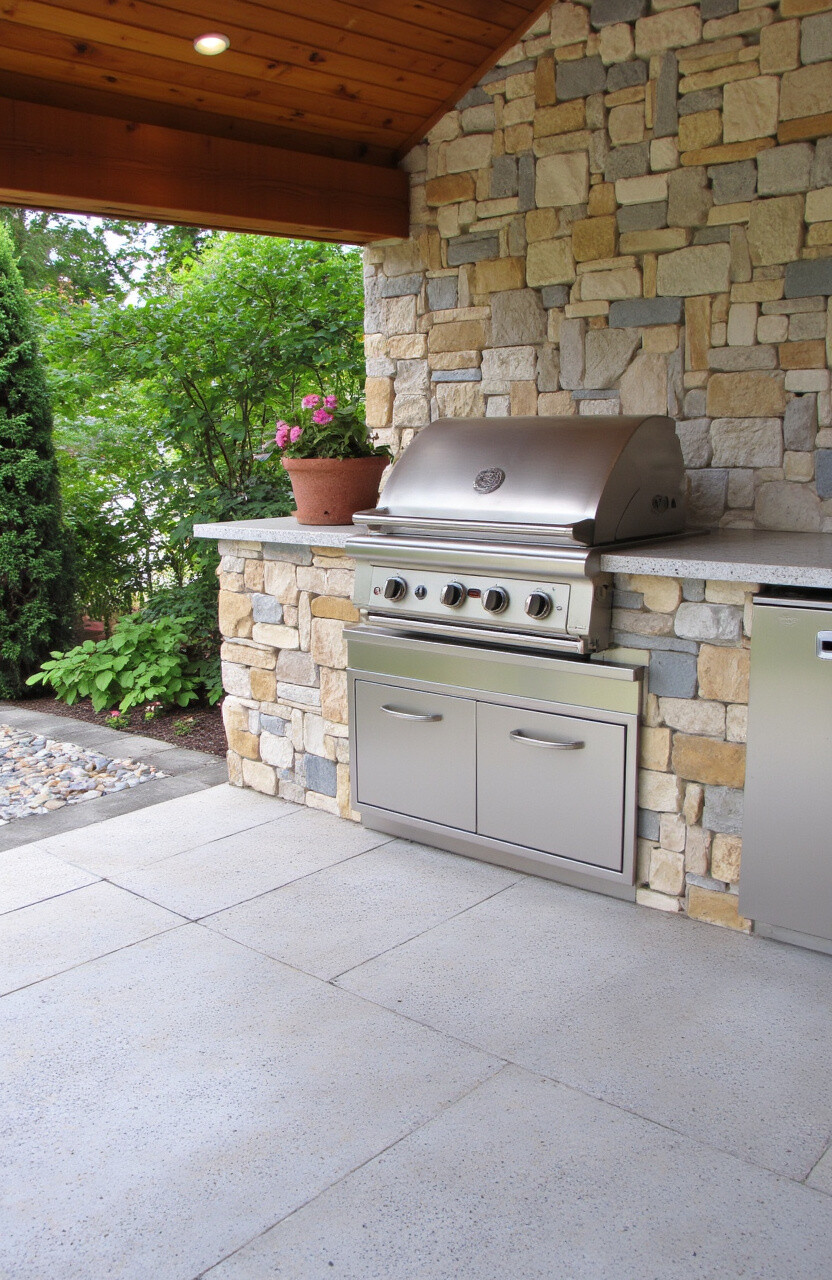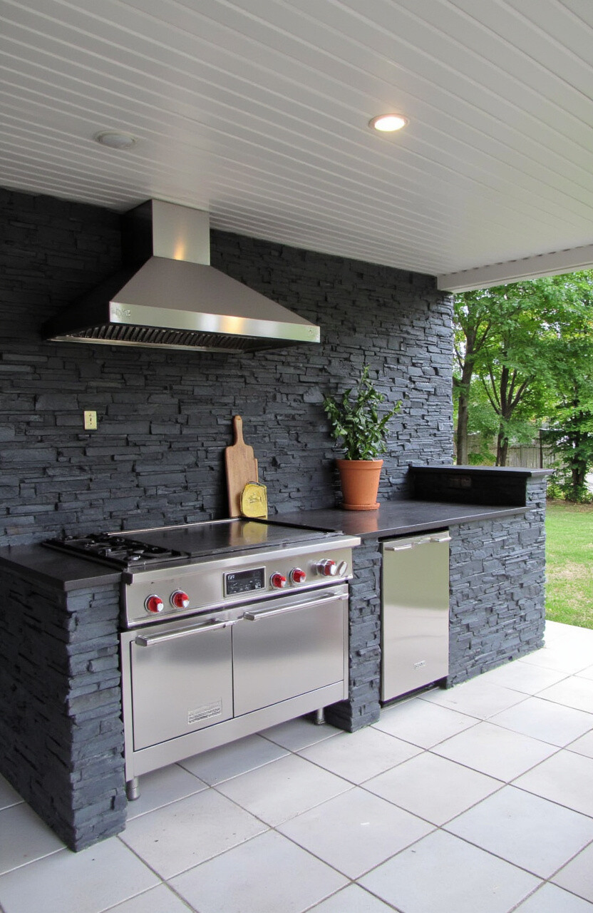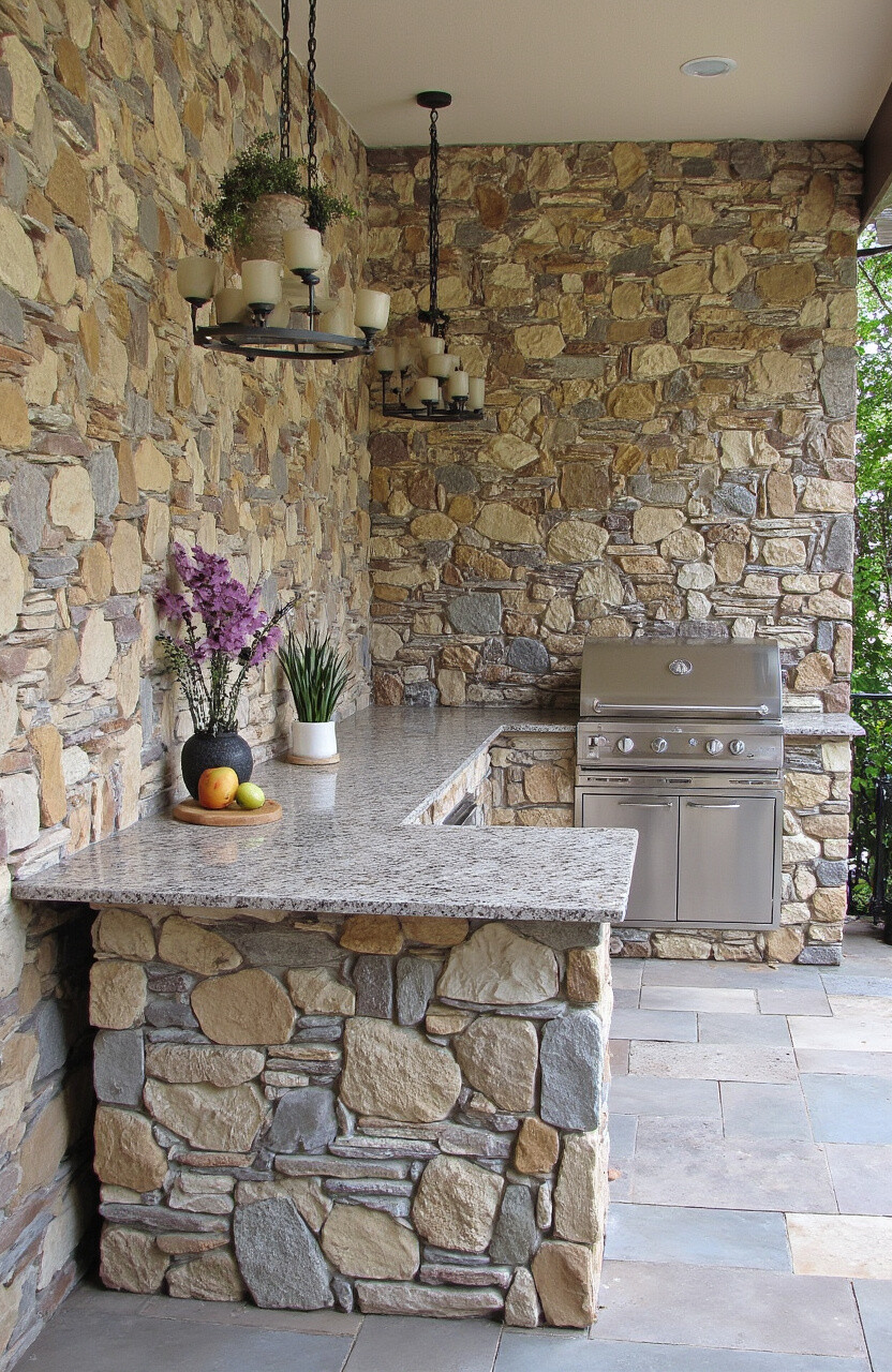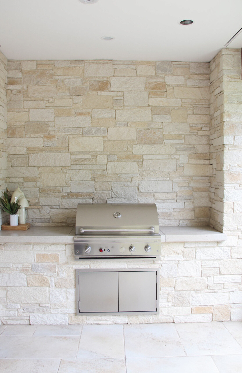 This stone is known for its durability and versatility, making it a great investment for your outdoor kitchen. You can use it for walls, countertops, and even flooring for a cohesive look.
