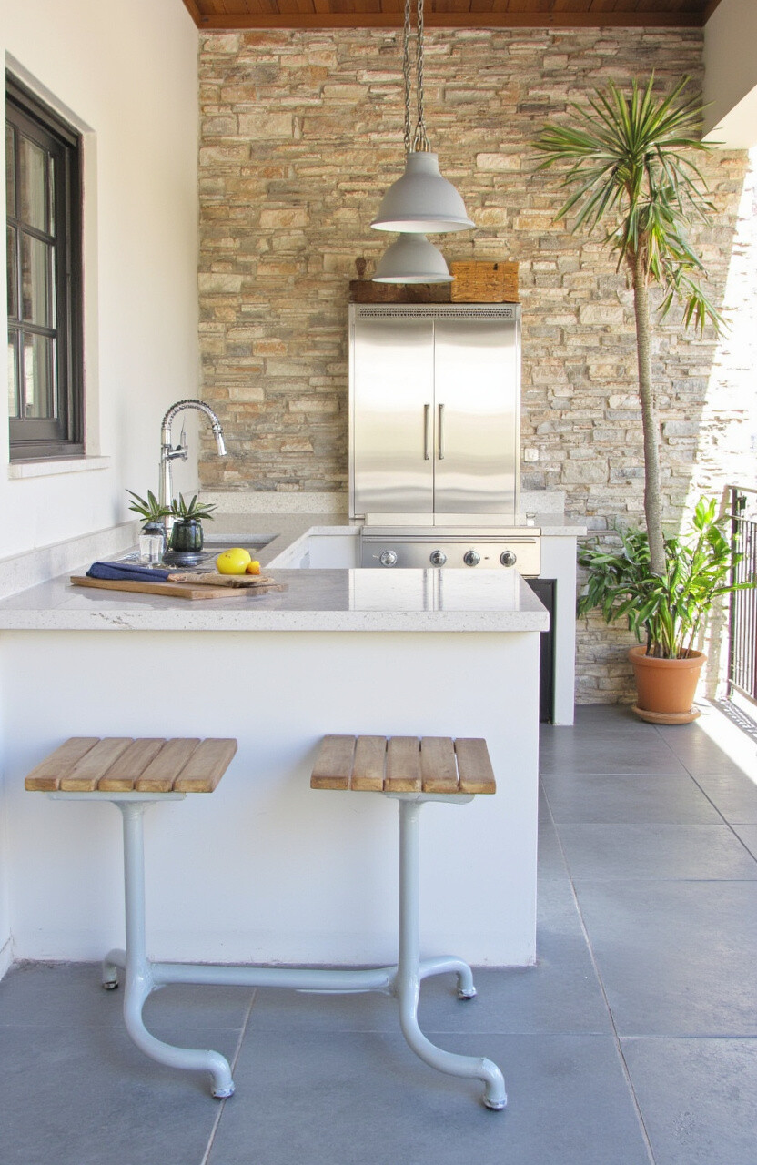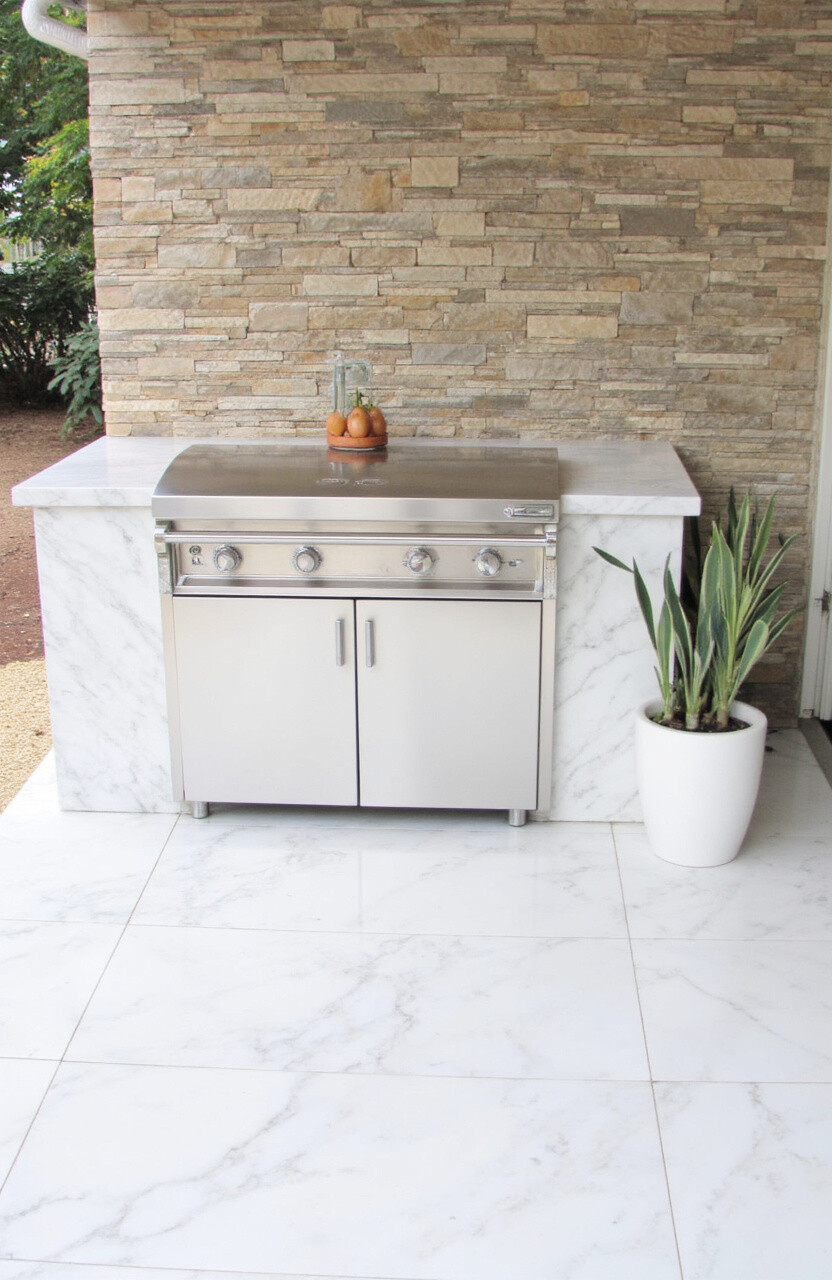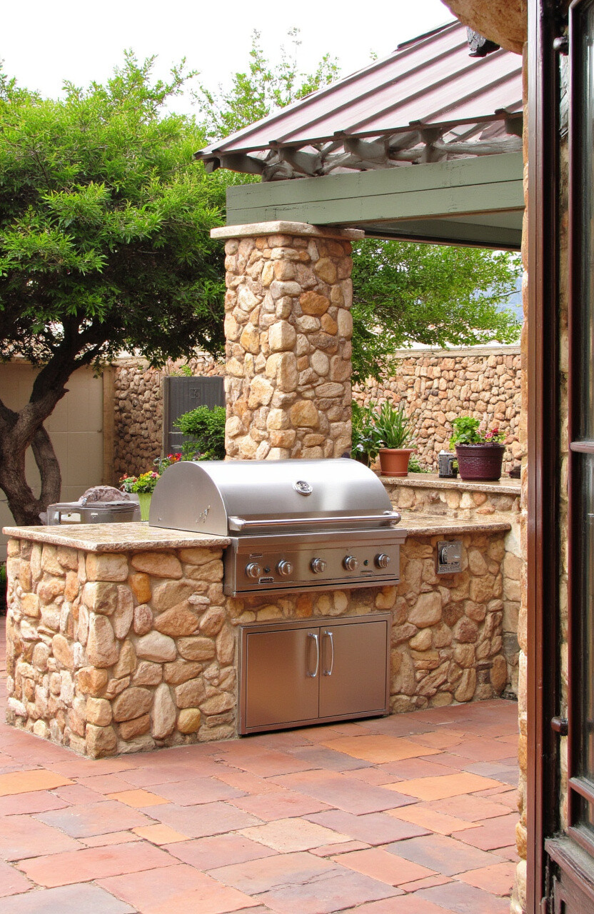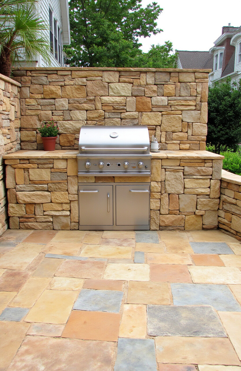 This stone is known for its durability and versatility, making it a great investment for your outdoor kitchen. You can use it for walls, countertops, and even flooring for a cohesive look.