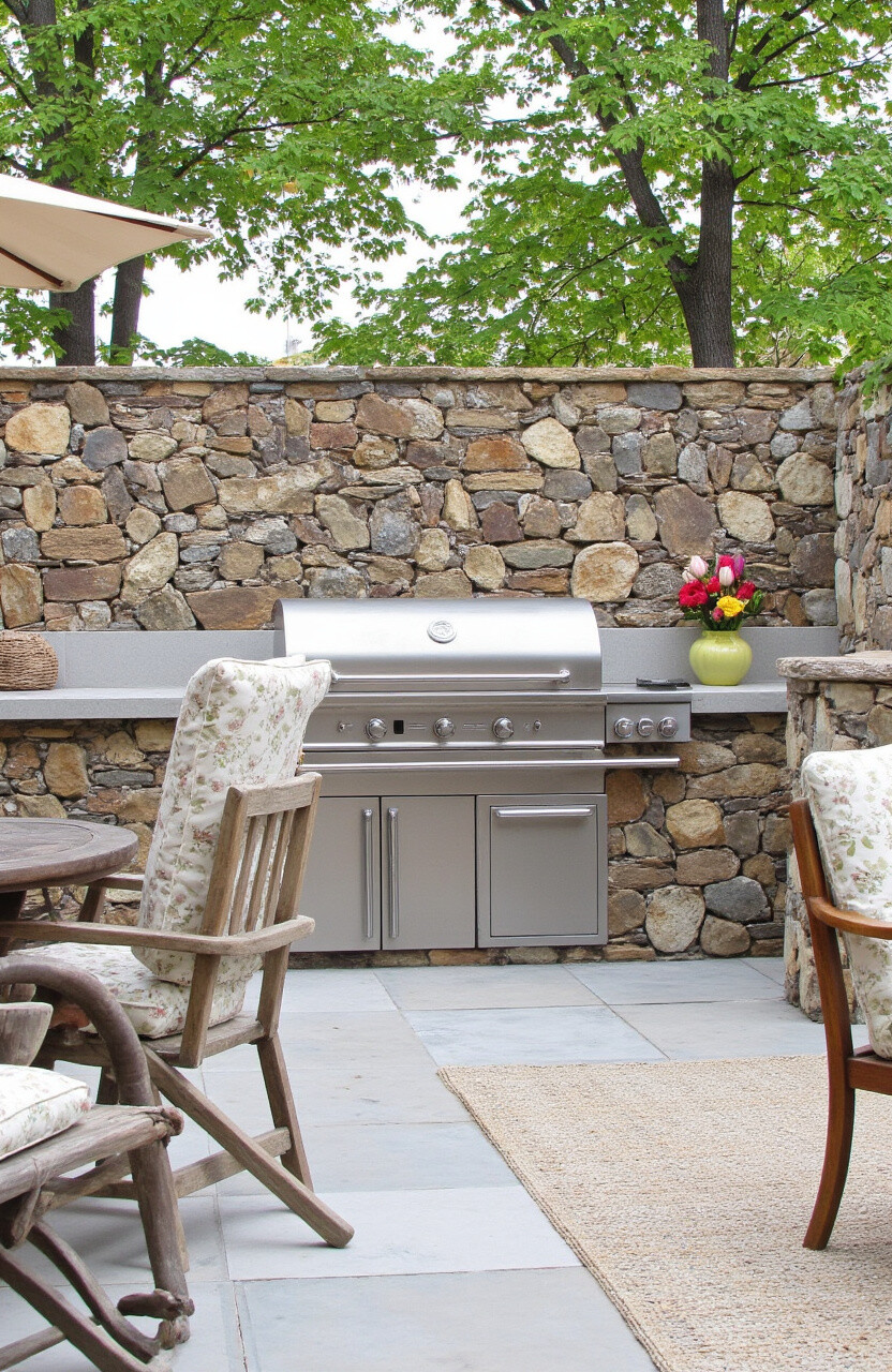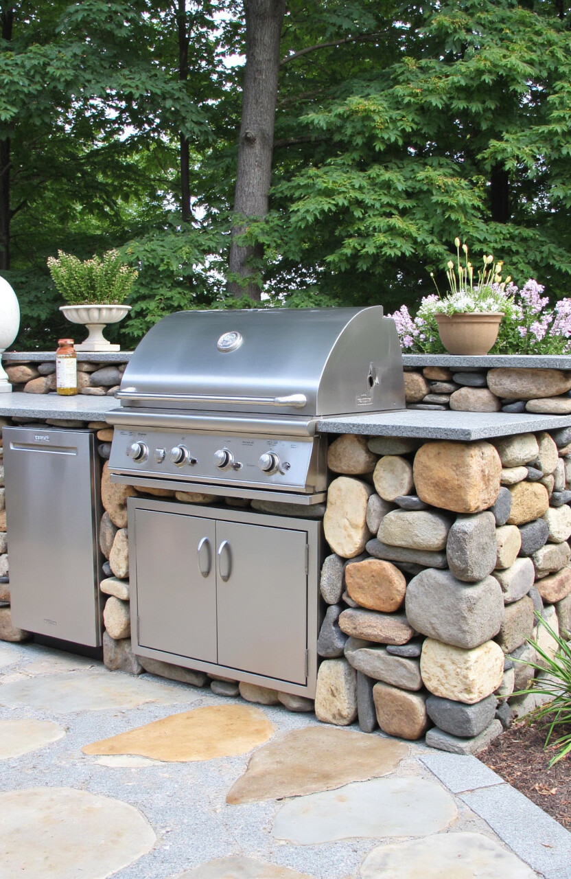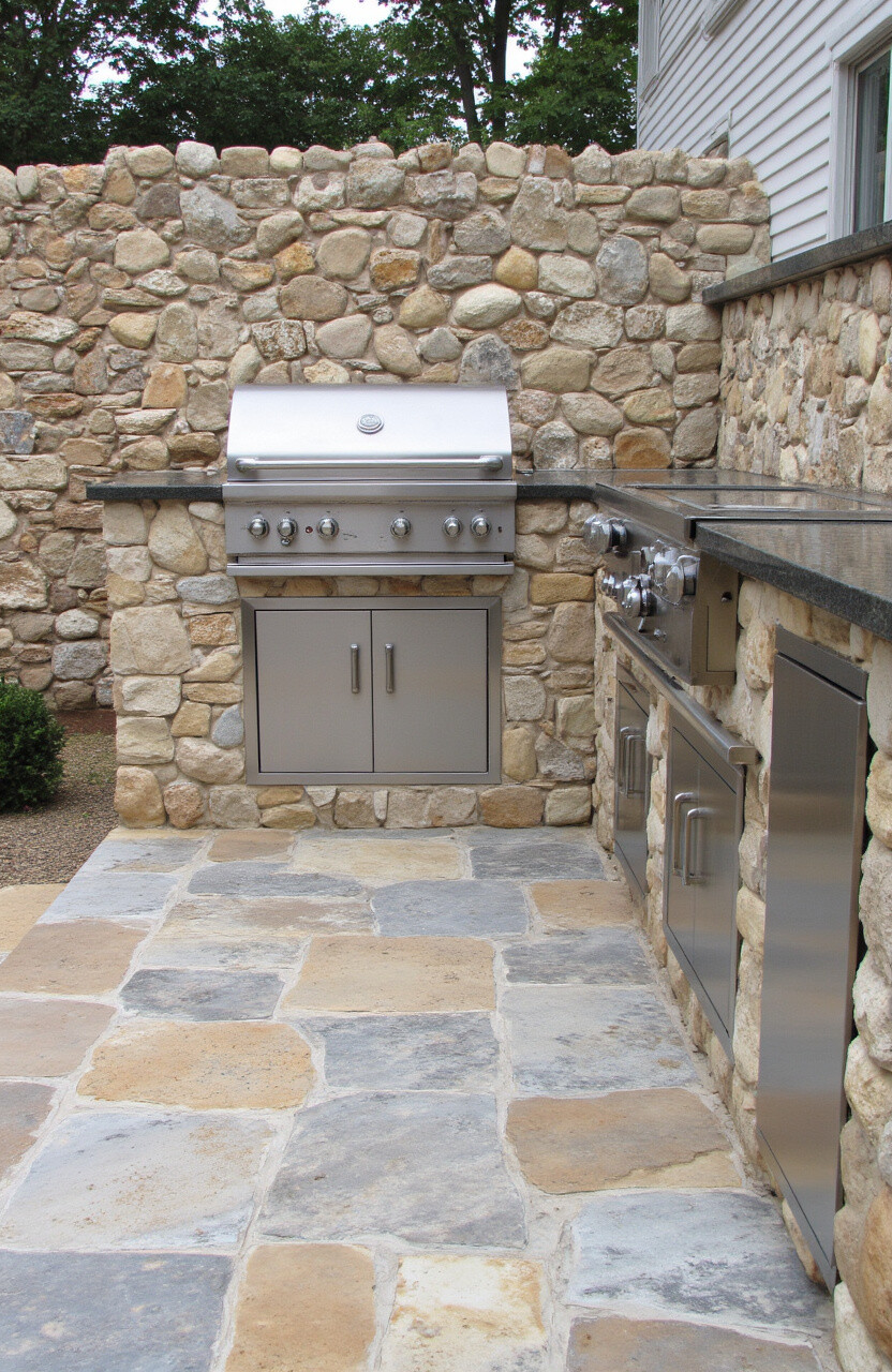 Fieldstone is incredibly durable, making it a practical choice for outdoor settings. It naturally resists weathering and can stand up to the elements. Consider using it as a backdrop for your grill area.