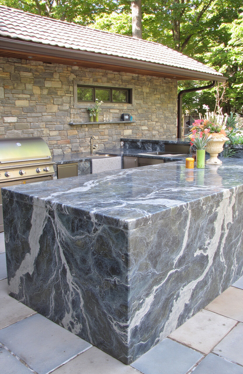 This stone is not only beautiful but also incredibly durable, making it a practical choice for outdoor kitchens. It’s easy to clean and maintain, requiring minimal effort.