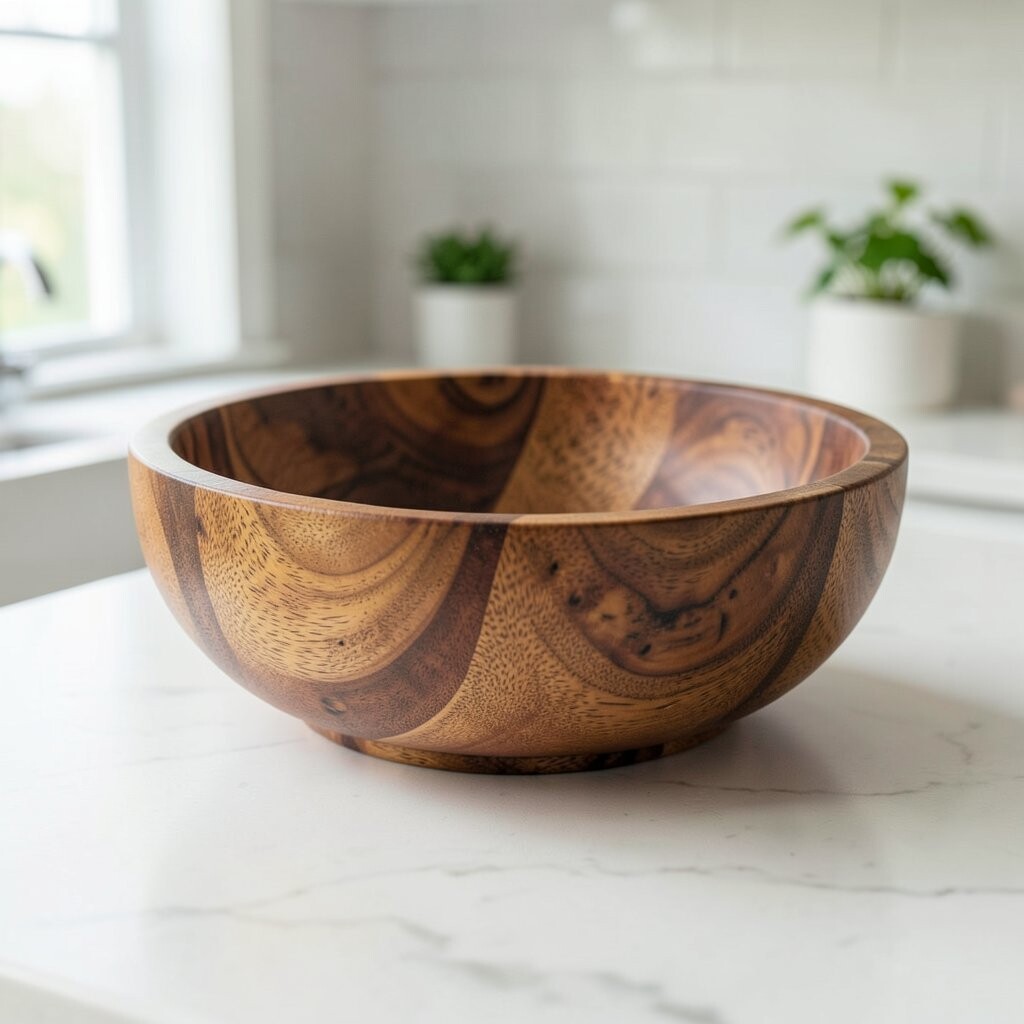 Use it for bread dough, salad, or fruit on the table. A small custom engraving can add charm, and the cost is often friendly for a first wooden bowl purchase.