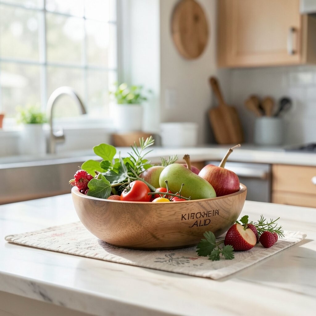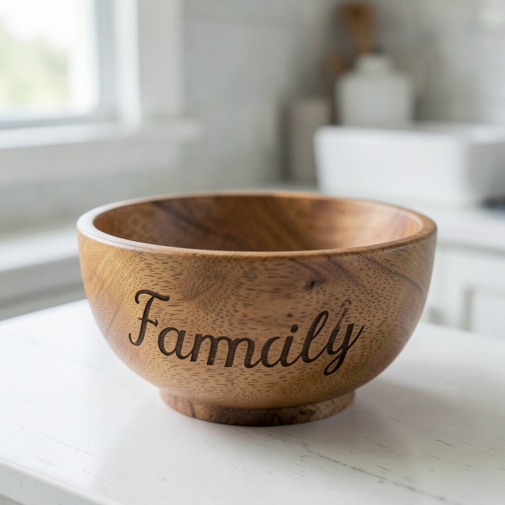 An engraved family name bowl adds a personal touch that feels sweet and thoughtful. It can make a kitchen feel more like home right away.