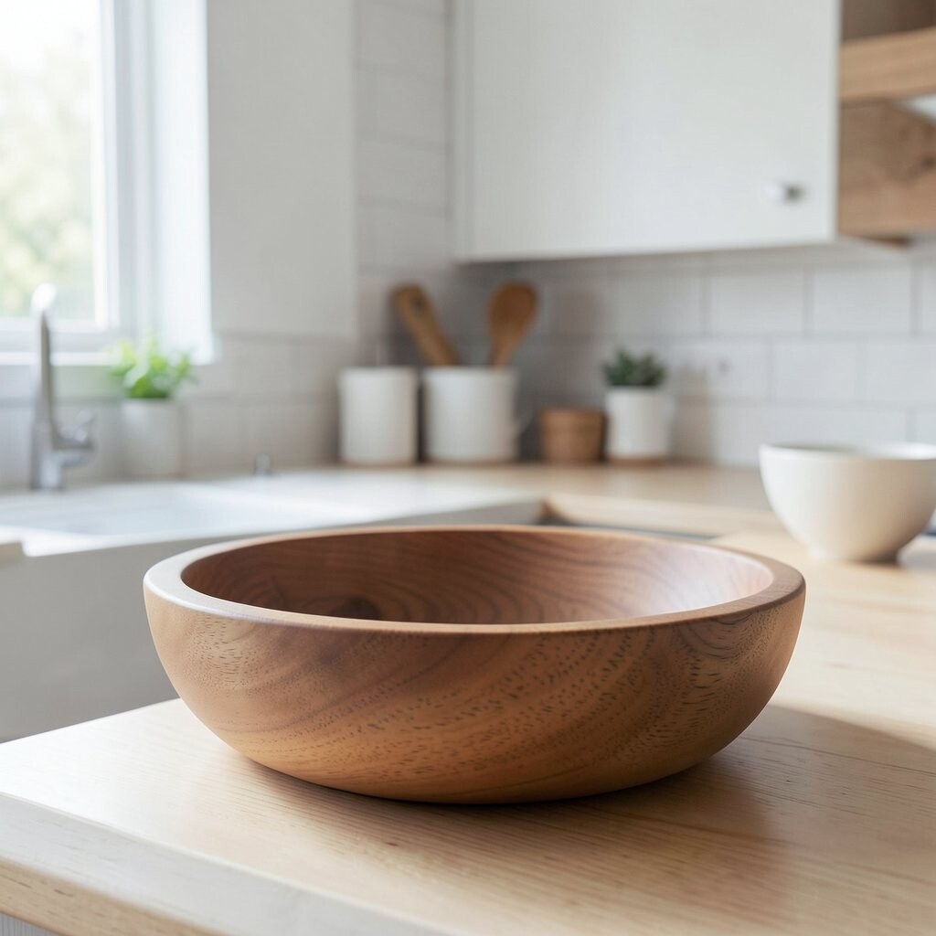 A smooth maple bowl has a light, clean color that feels bright and fresh. It can make your kitchen look neat and airy without trying too hard.