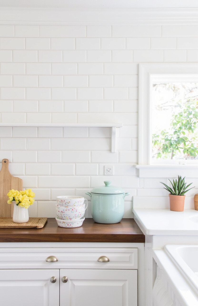 Nothing beats the charm of classic white subway tiles. They bring a clean, bright look to any kitchen. They’re easy to match with just about any color scheme.