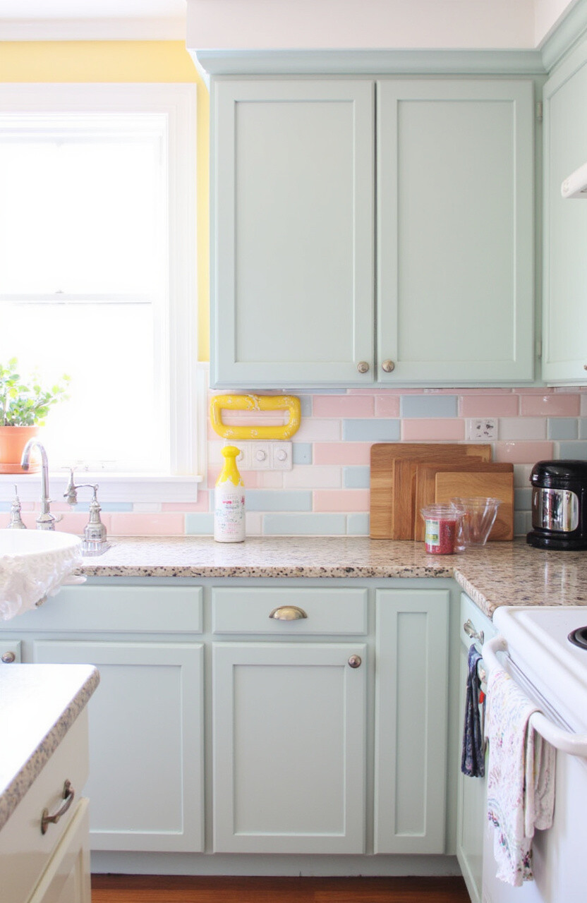 Colored tiles add a fun and playful vibe. They’re perfect for a family kitchen or if you simply adore color. Mix and match shades for a unique and personalized look.