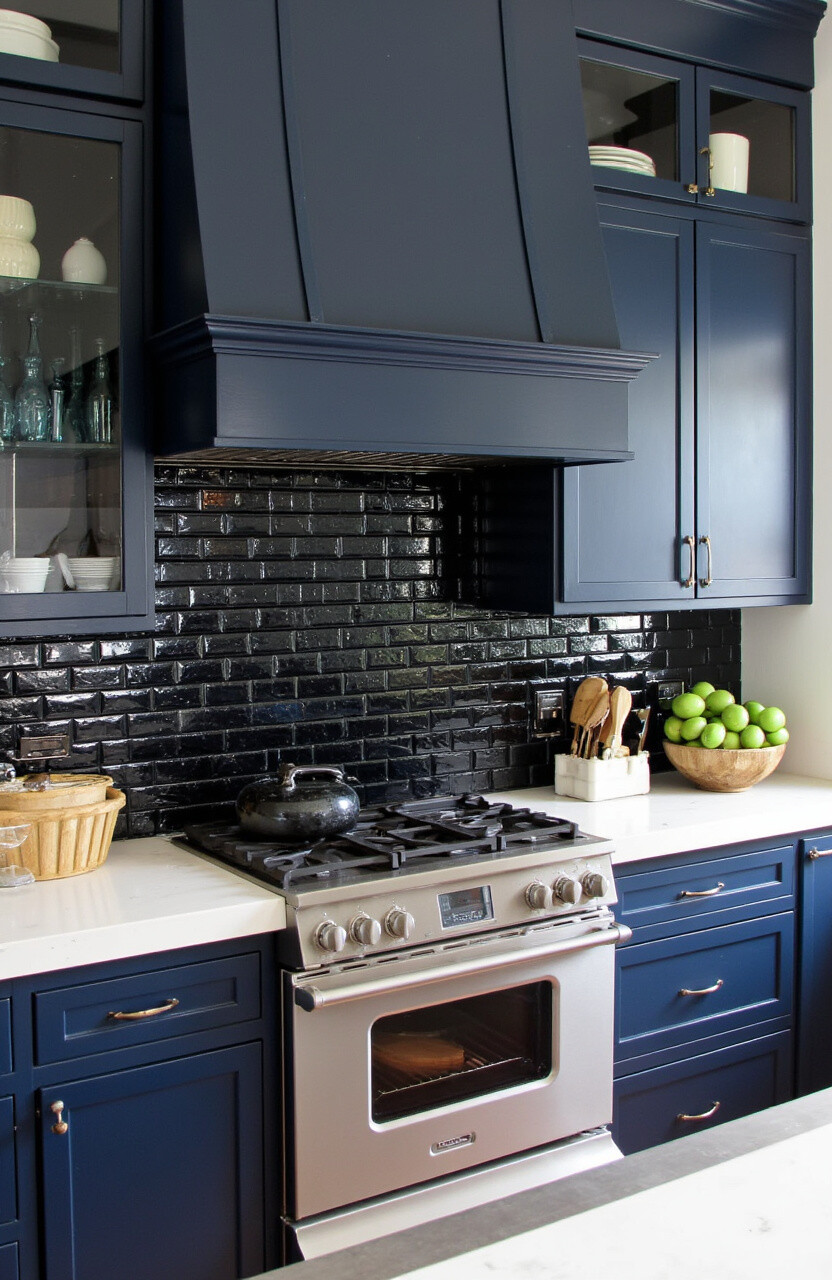 Dark subway tiles add a touch of drama and sophistication. Deep blues, blacks, or even dark greens can turn your kitchen into a stylish space.