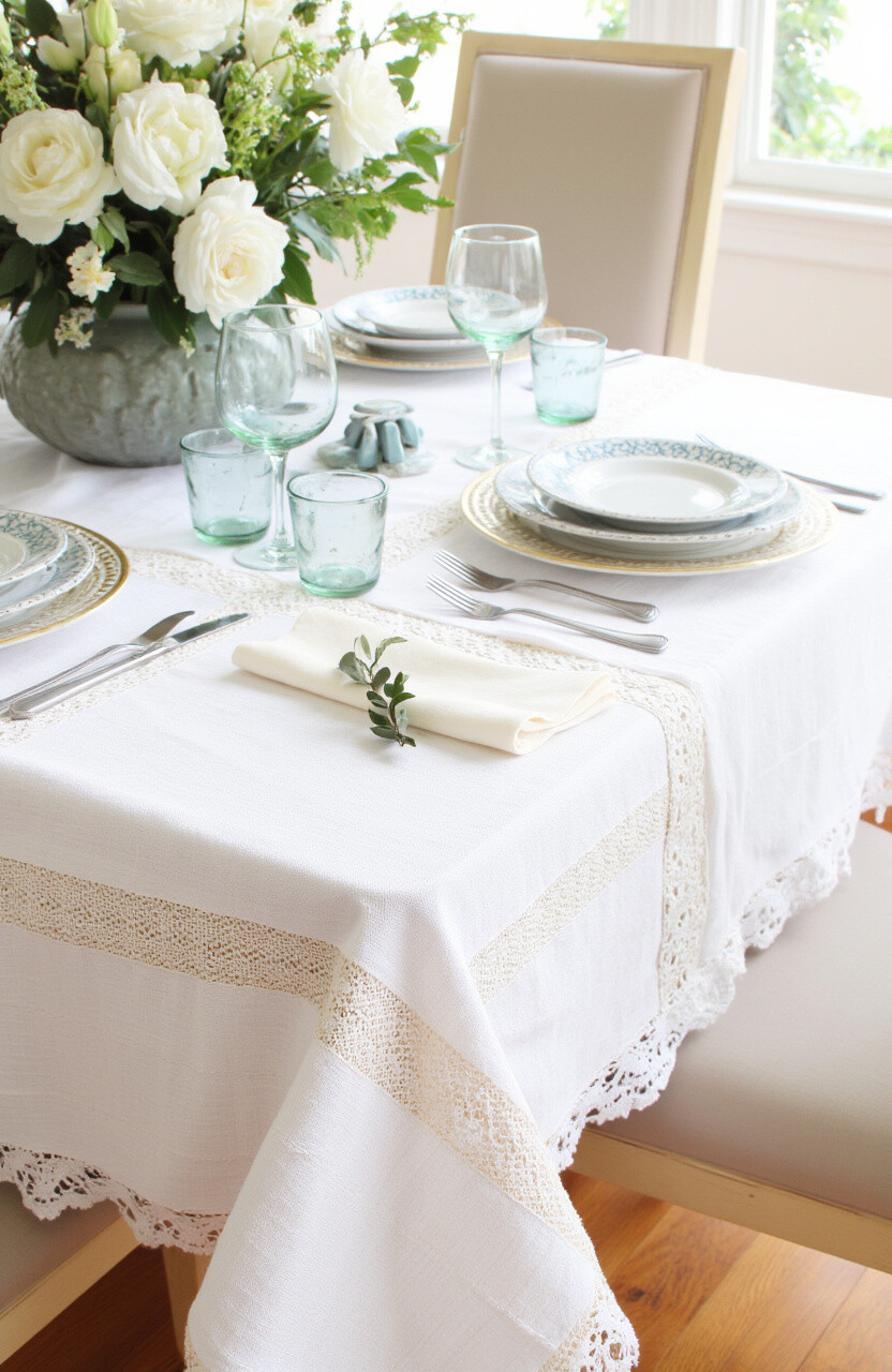 Layer different tablecloths to add depth and texture. Think lace over linen or burlap over cotton. This technique creates a rich, inviting look.