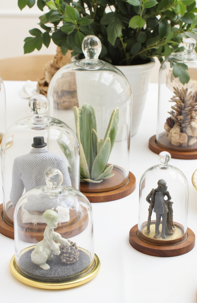 Place small decor items under elegant glass domes. It’s like creating a tiny museum on your table. Perfect for showcasing seasonal items or collectibles.