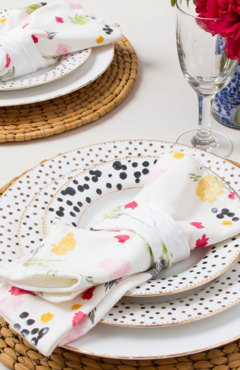 Swap out paper for colorful fabric napkins. It’s an easy way to introduce color and pattern to your table. Plus, it’s more eco-friendly!