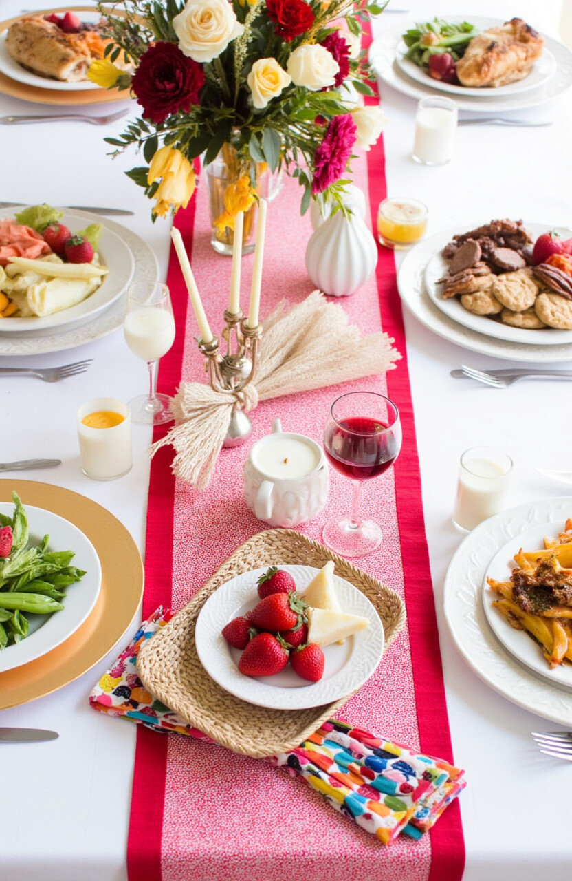 Opt for a vibrant table runner to add a splash of color. It’s a simple way to brighten up any setting and create a focal point.