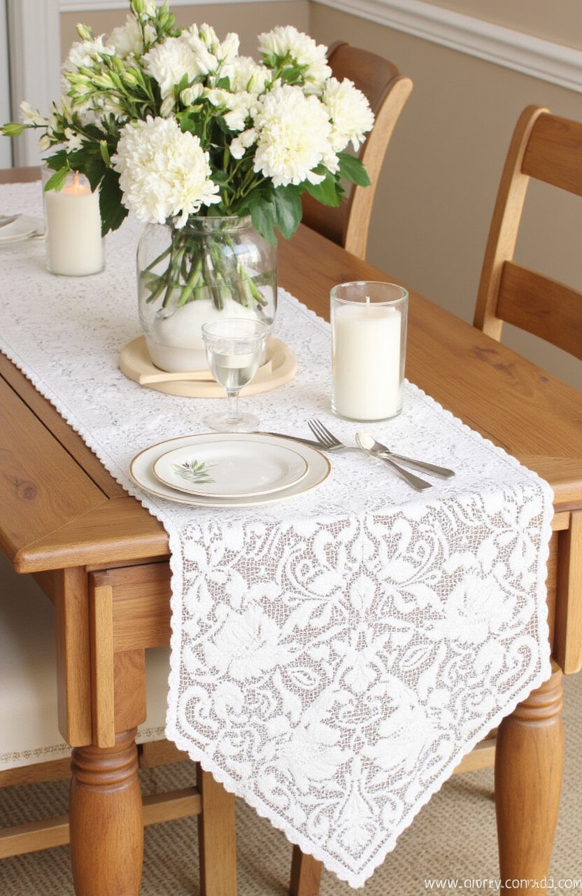 Use a lace runner to add a touch of elegance to your table. It’s like dressing your table in its Sunday best. Perfect for weddings or formal dinners.
