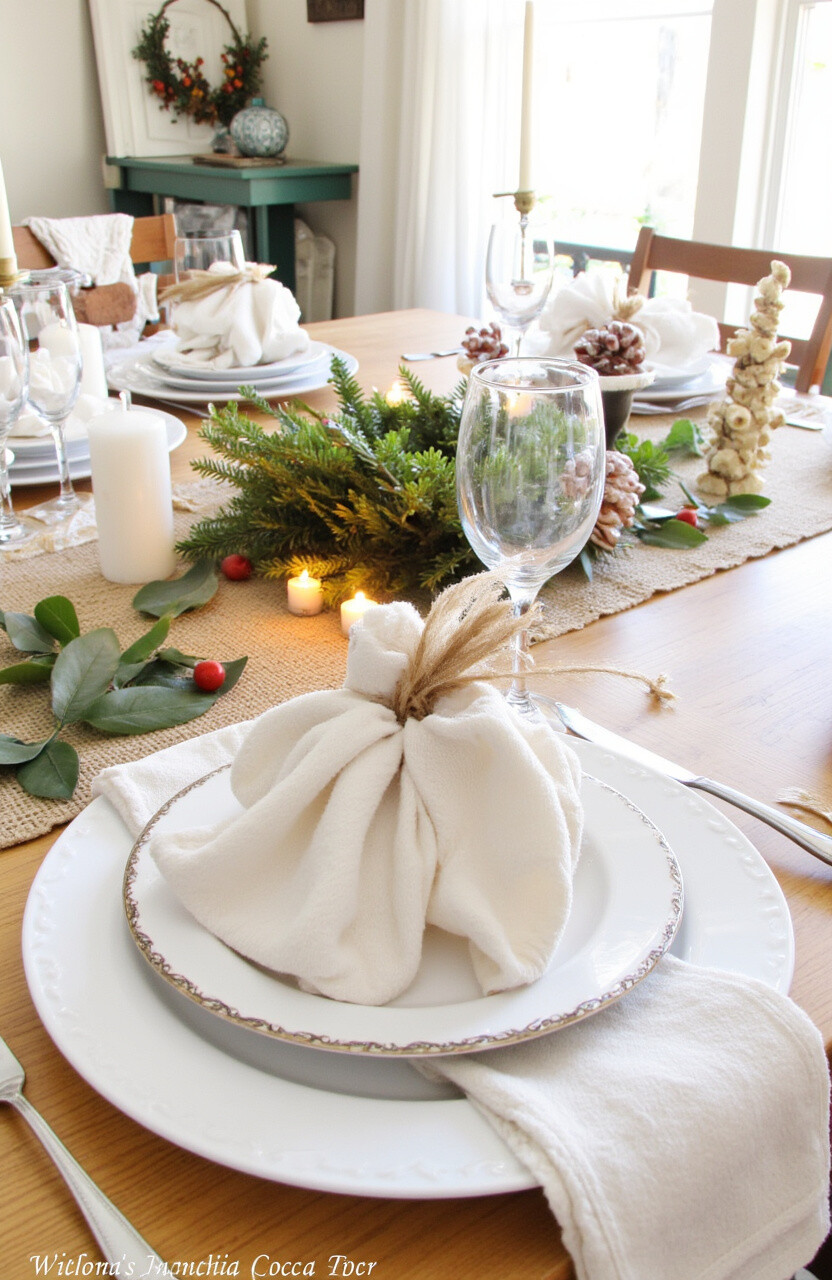 Use cozy knits like blankets or table runners for warmth and texture. It’s like wrapping your table in a soft sweater.