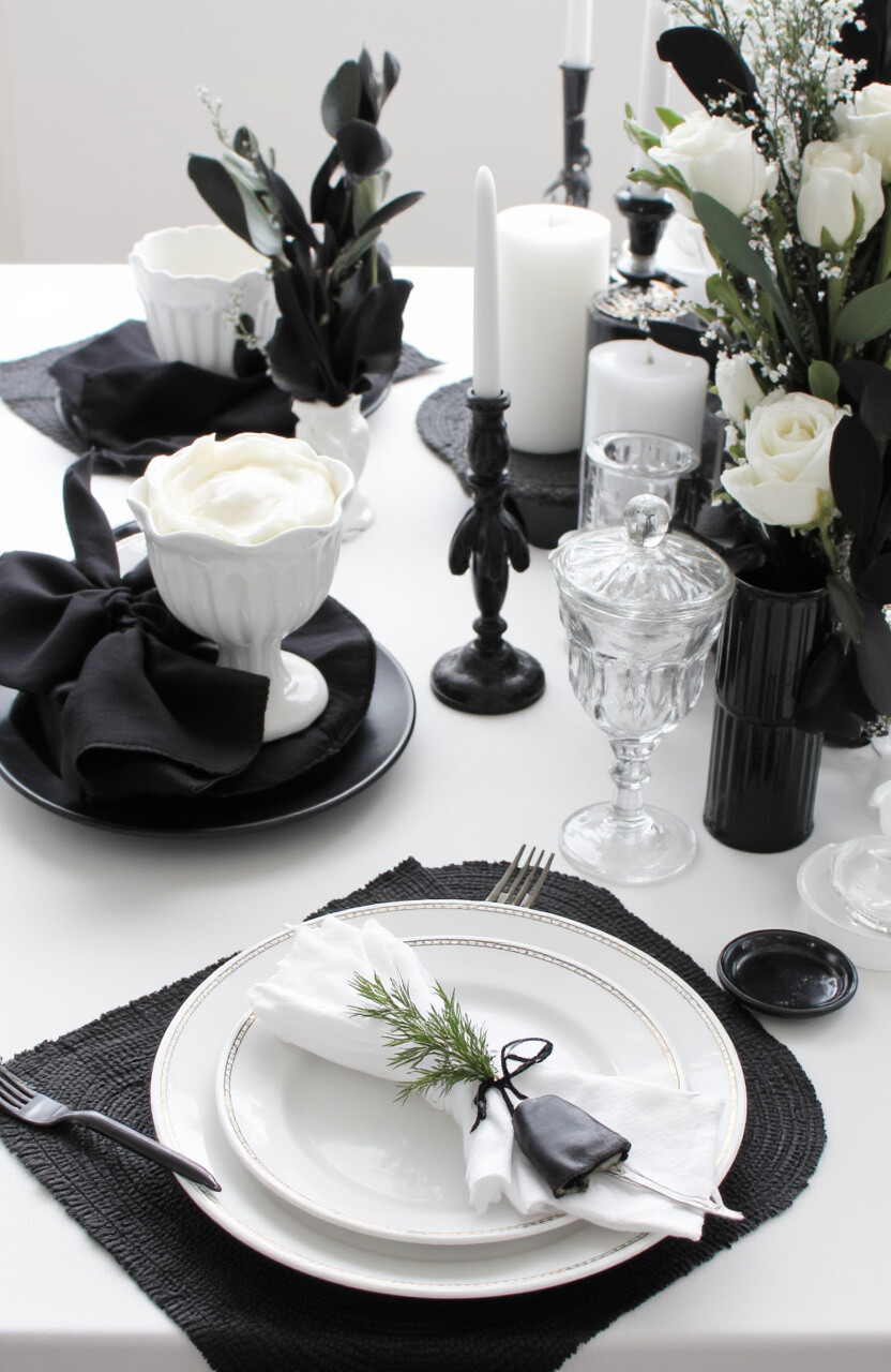 Monochrome settings are elegant and timeless. They’re easy to put together with items you already own. This style works well for both casual and formal gatherings.