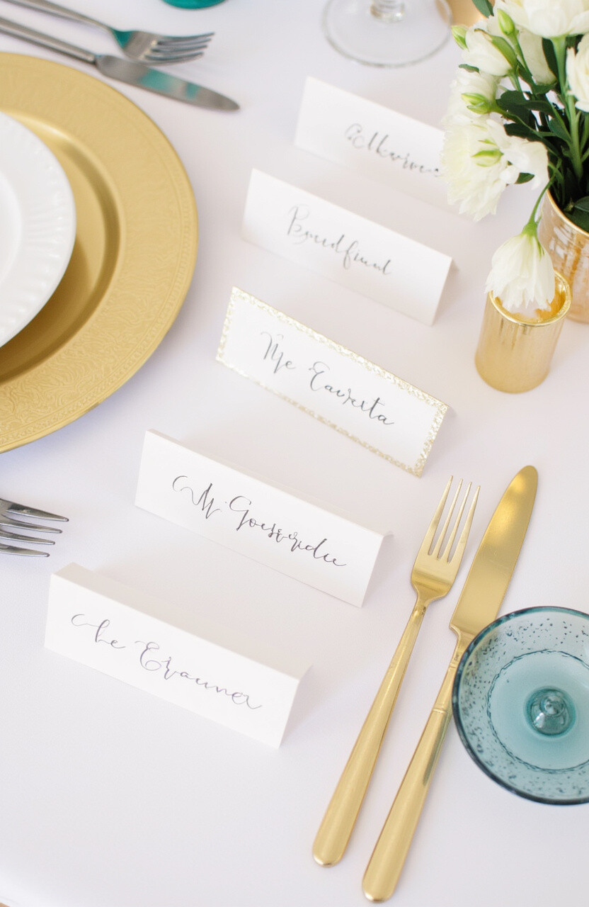 Use decorative paper and calligraphy pens for an elegant look. It’s easy and affordable, yet feels luxurious. Your guests will appreciate the thoughtfulness.