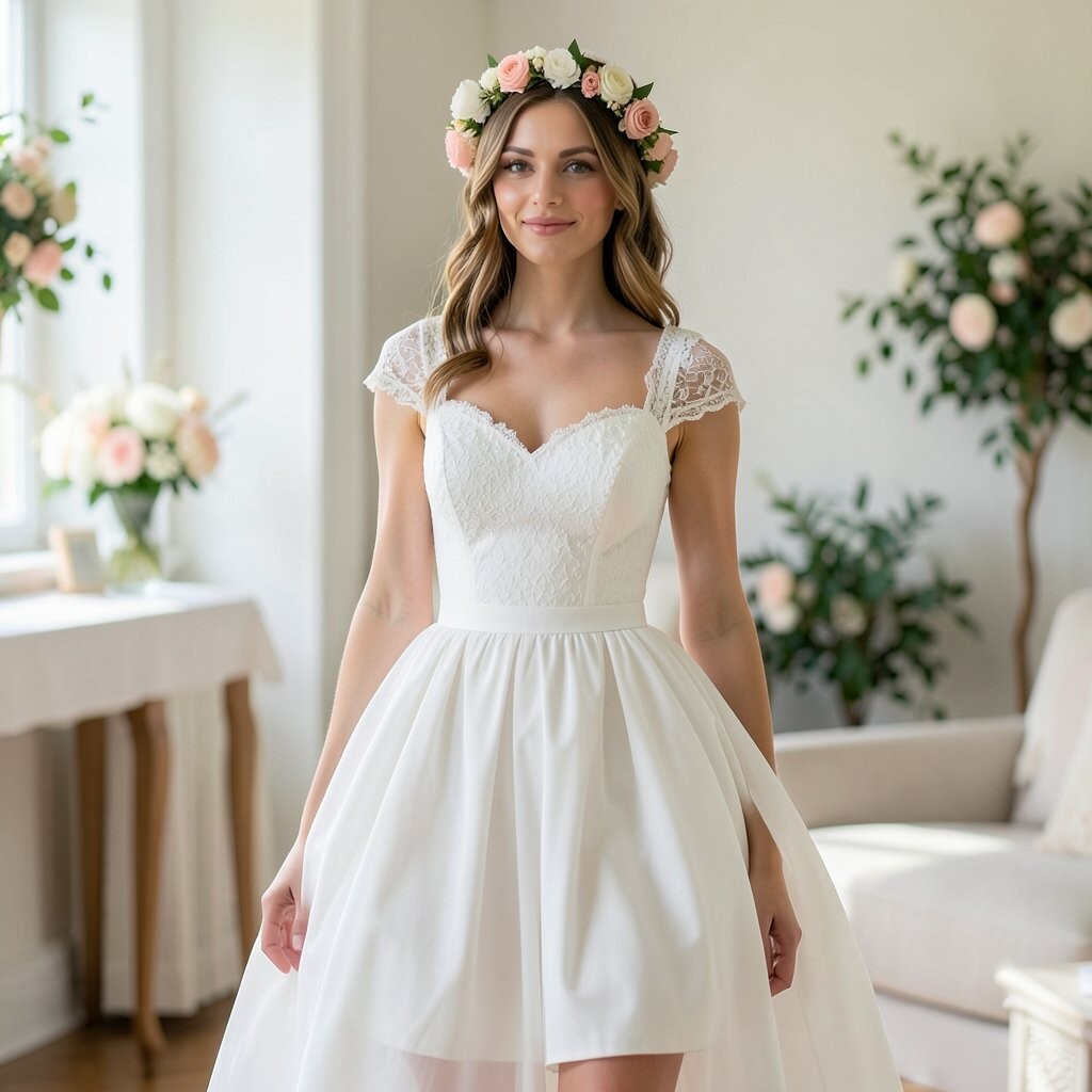 Embrace your inner flower child with a floral crown. It adds a whimsical touch to your puffed dress.
