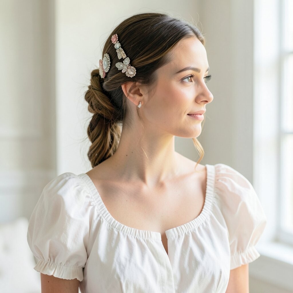 Pick clips with rhinestones or pearls for a touch of elegance. They’re perfect for special occasions and easy to style.