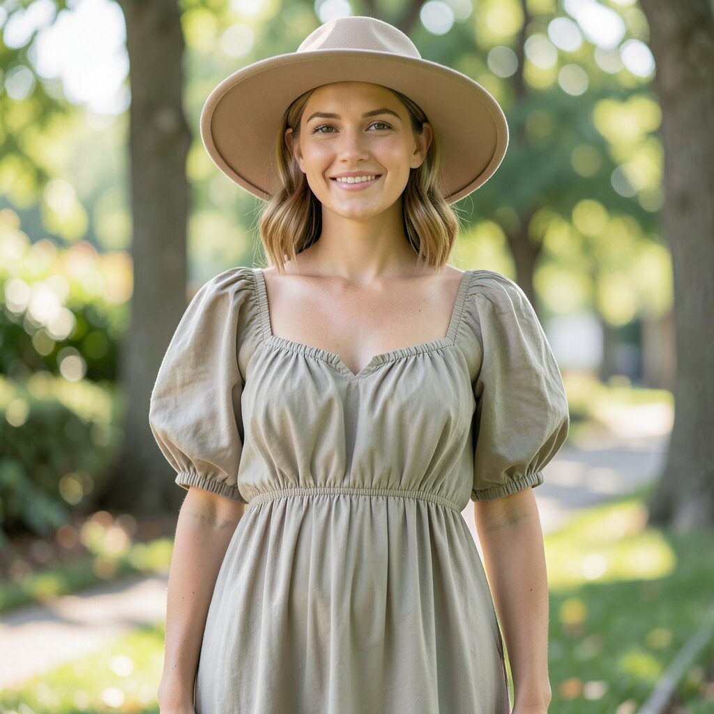 A wide-brimmed hat adds a touch of mystery and elegance. It’s perfect for sunny days and outdoor events.