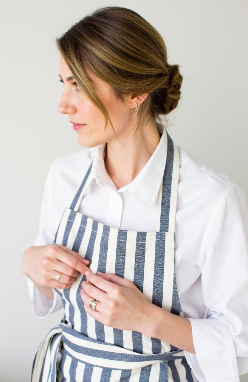 This style is perfect for special occasions or when you want to feel a bit more sophisticated. Pair it with a striped apron for that chic Parisian vibe.