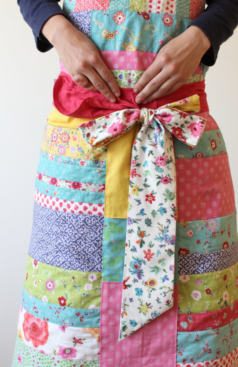 Add some texture with a quilted tie. It’s quirky and gives your apron a handcrafted feel.