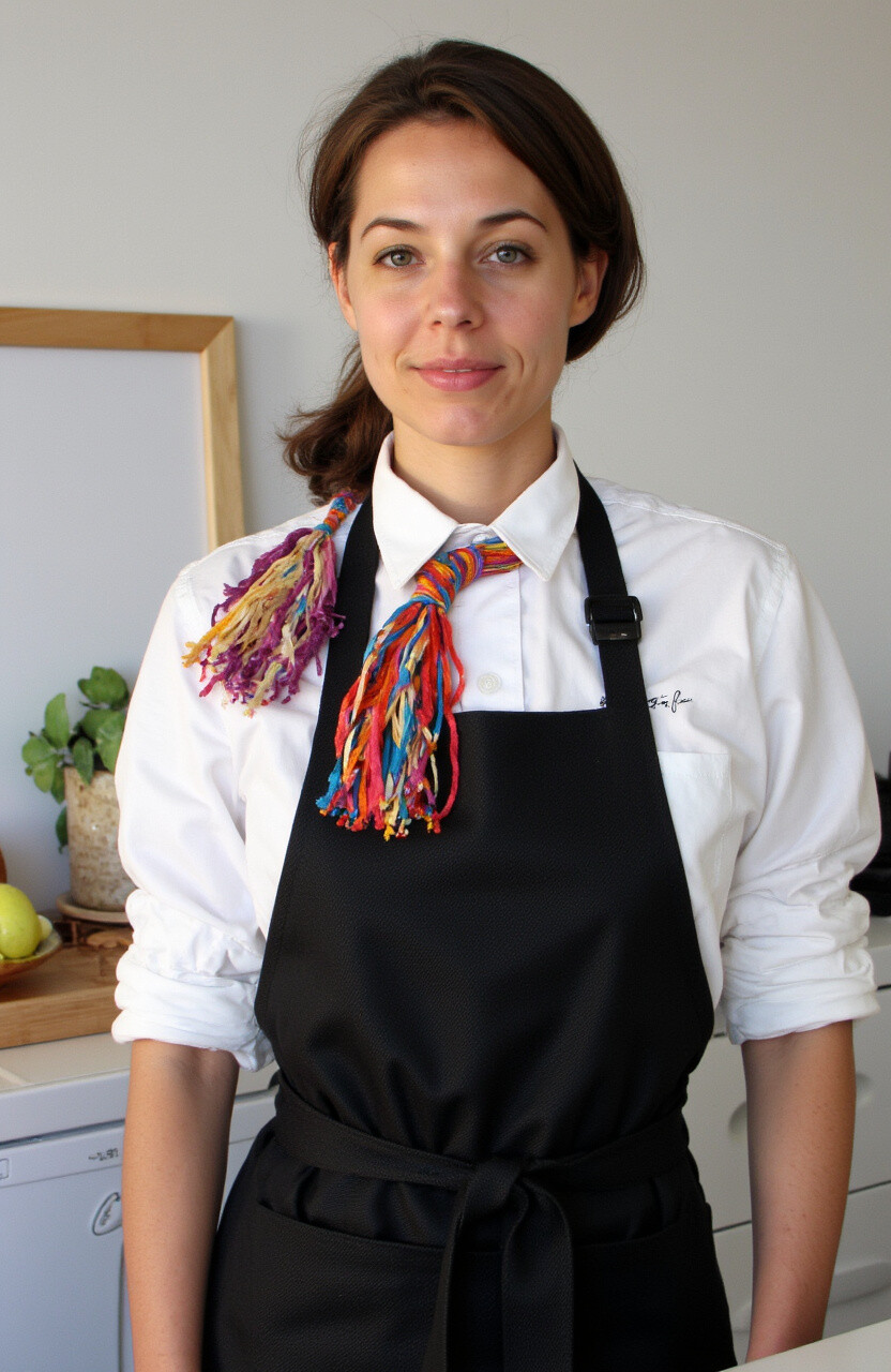 Ah, the classic bow tie—a timeless favorite. It’s simple yet sophisticated, adding a charming touch to any apron. Plus, it keeps everything snug.