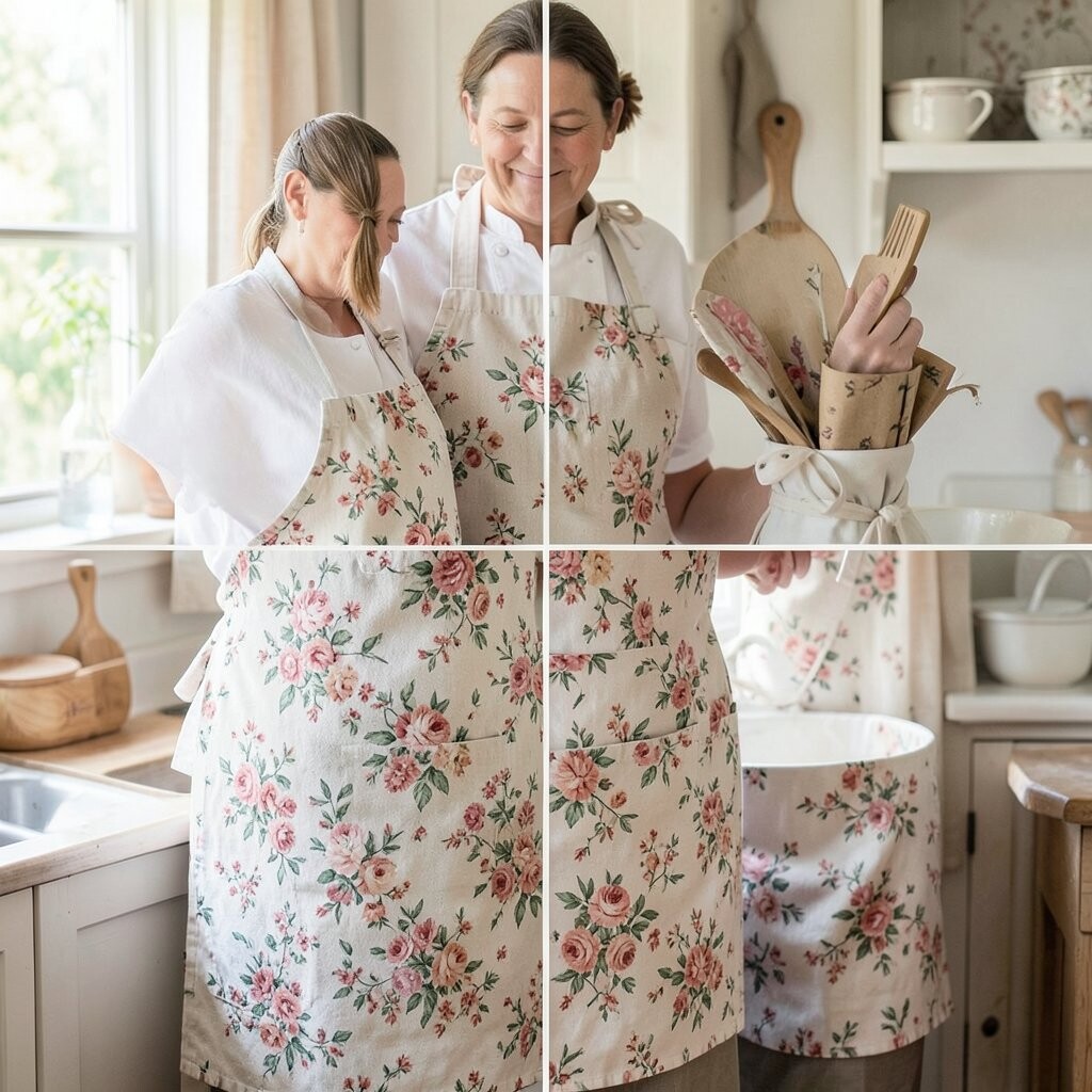 These aprons are not only stylish but budget-friendly, often found in thrift stores or vintage shops. You can even sew one yourself if you’re feeling crafty!