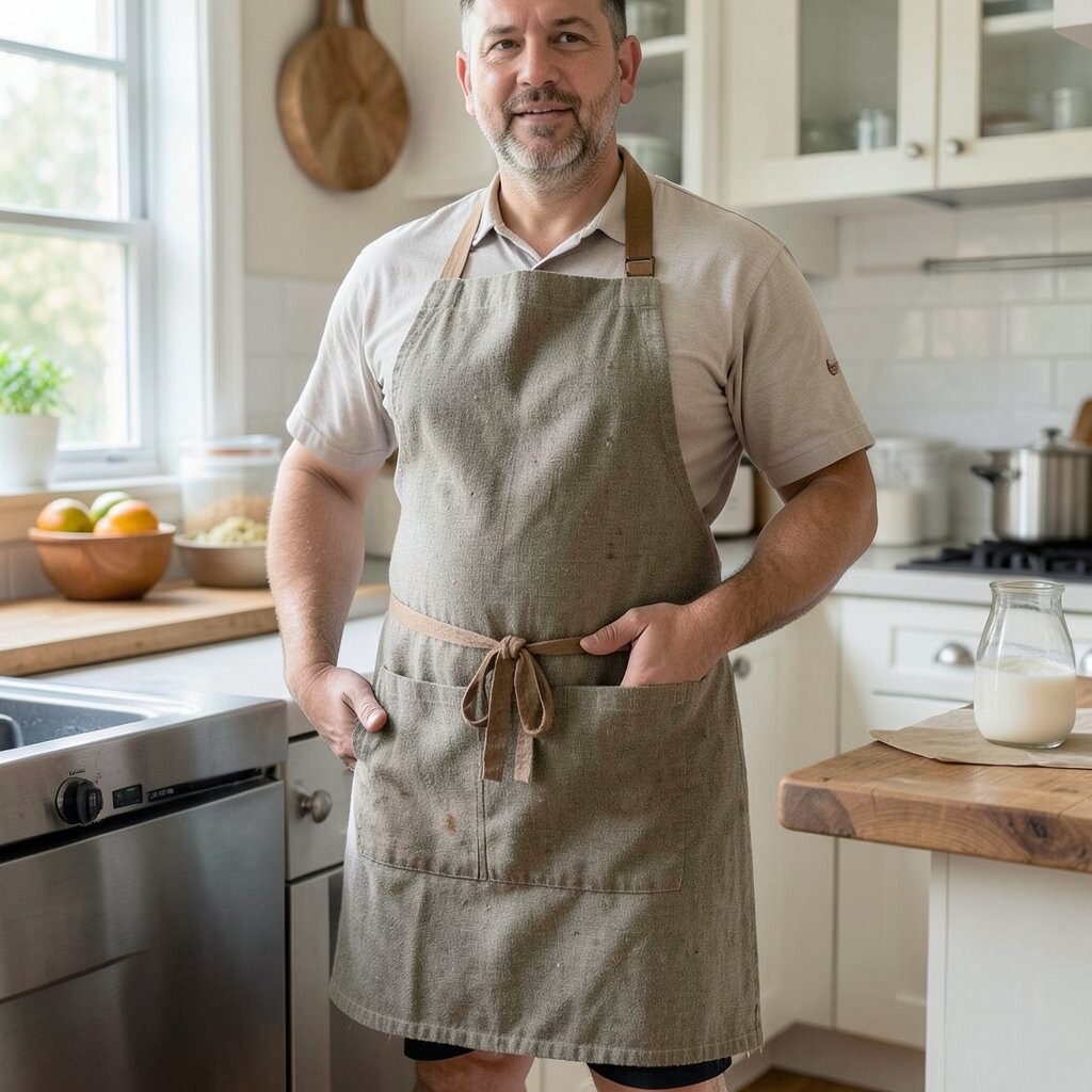 Linen is breathable and durable, perfect for long cooking sessions. It gets softer with each wash, making it a delightful choice for everyday use.