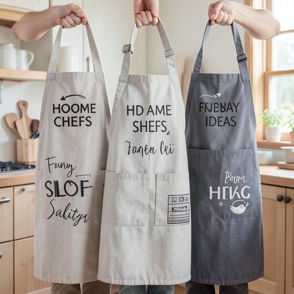These aprons can be found online or crafted at home with fabric paints. They’re a unique way to showcase your artistic side.