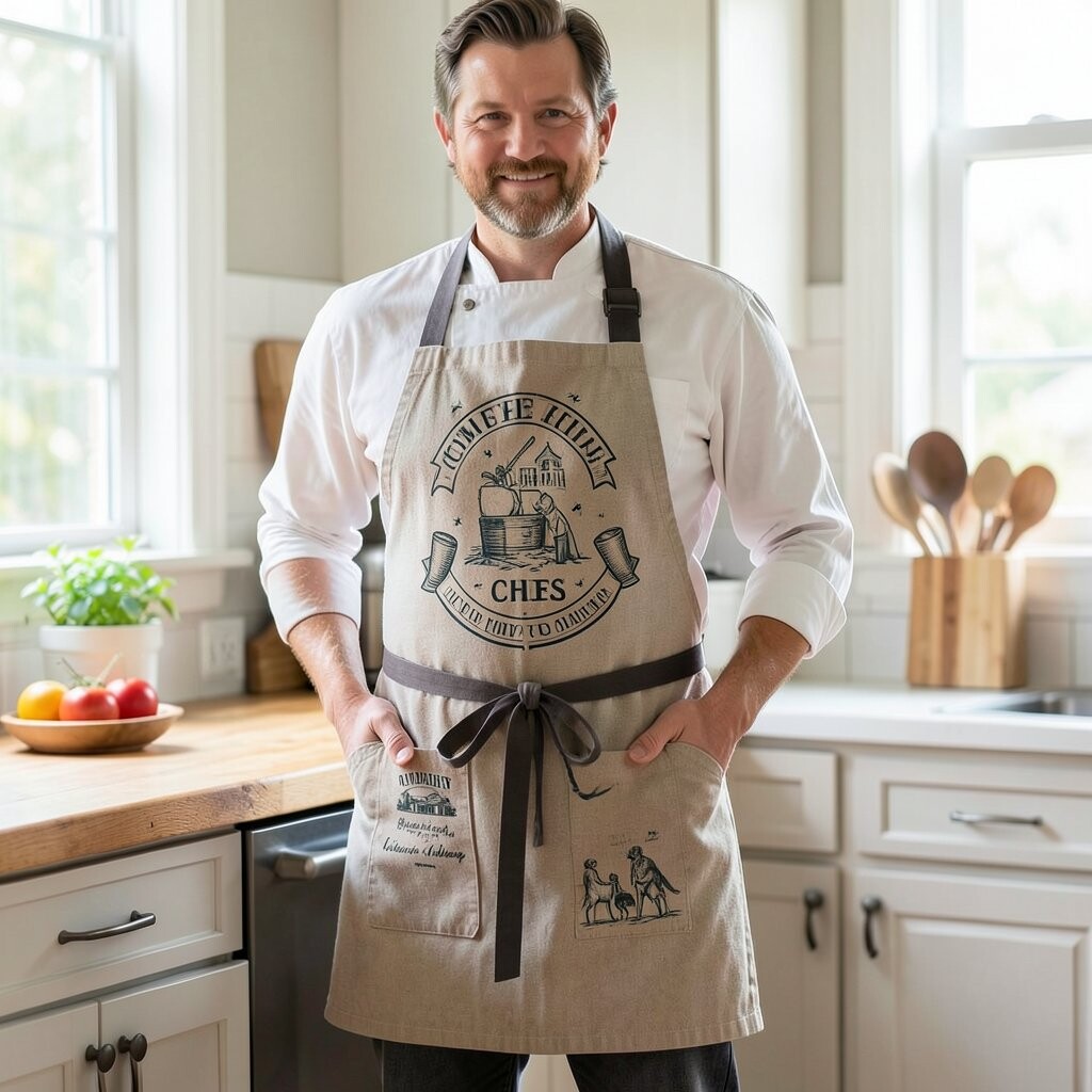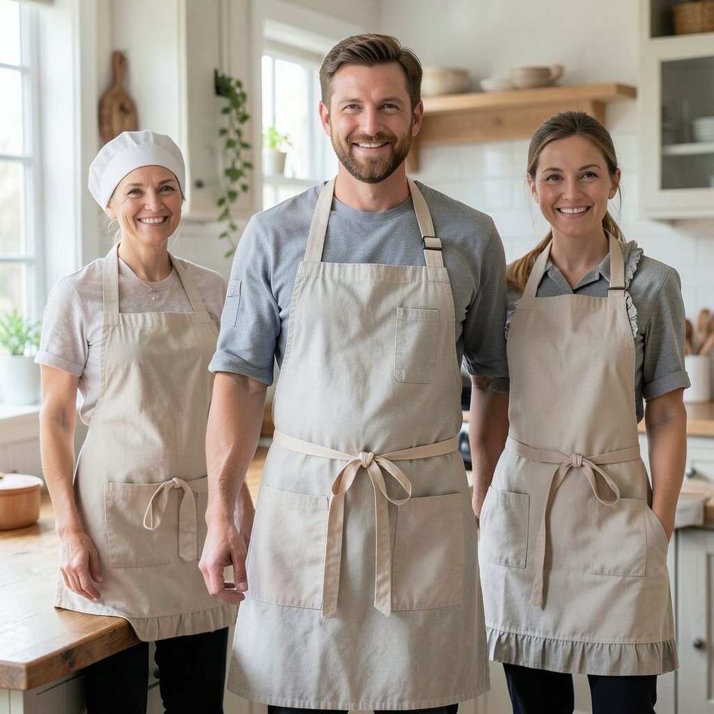 Linen aprons offer a rustic charm that is both timeless and elegant. The natural texture and neutral colors make them a favorite for those who love farmhouse style.
