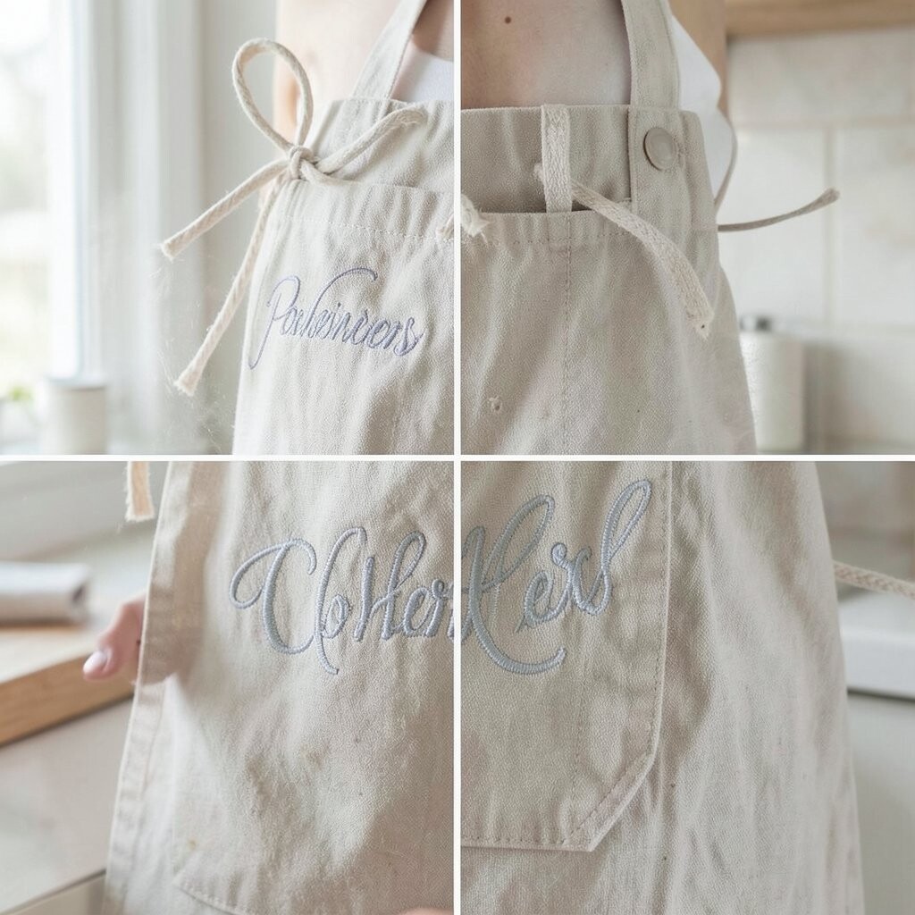 These aprons can be designed in any color or style, with your name or a fun message embroidered on them. It’s a great way to make your kitchen wardrobe uniquely yours.