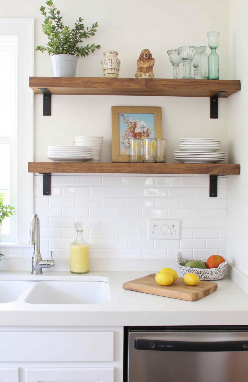 Open shelving can make a kitchen feel more spacious and airy. It’s a perfect way to display your favorite dishes and glassware.