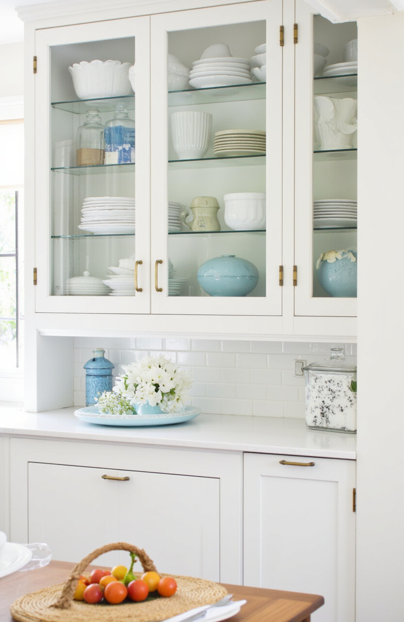 Glass front cabinets are a great way to showcase beautiful dishware while keeping dust at bay. They add a touch of elegance and openness.