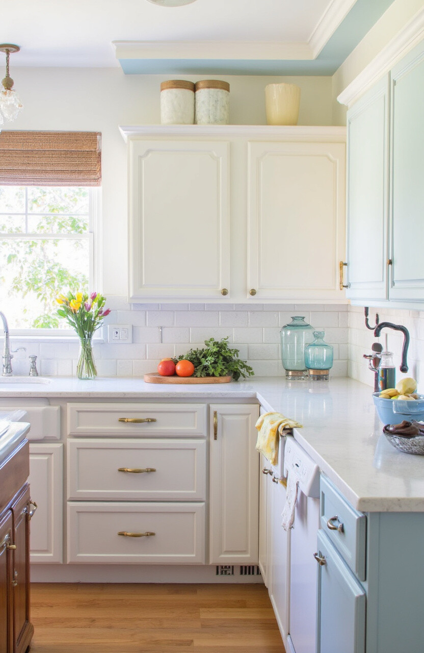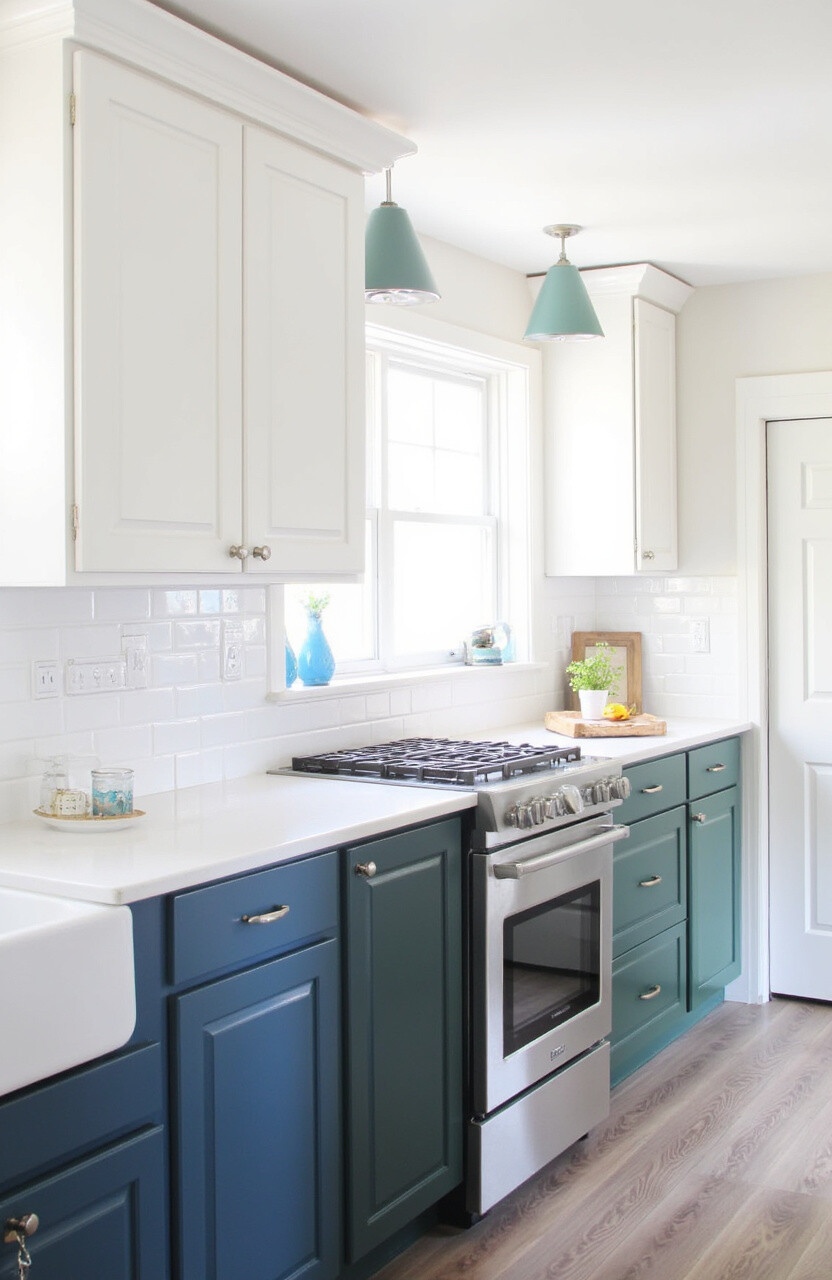 Try pairing a neutral base with colorful upper cabinets. This approach keeps the look balanced and visually appealing.