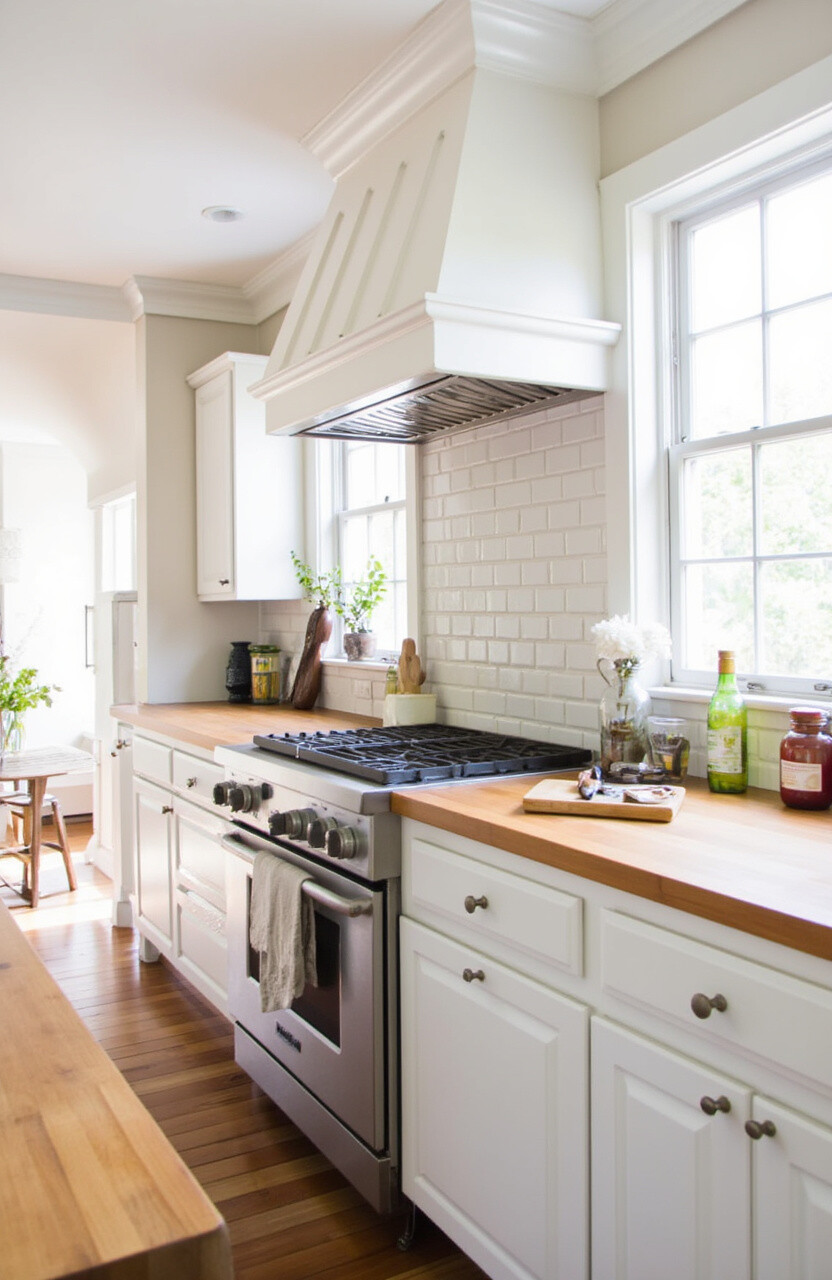 Butcher block countertops bring warmth and texture to a kitchen. Their natural wood finish adds a touch of rustic elegance.