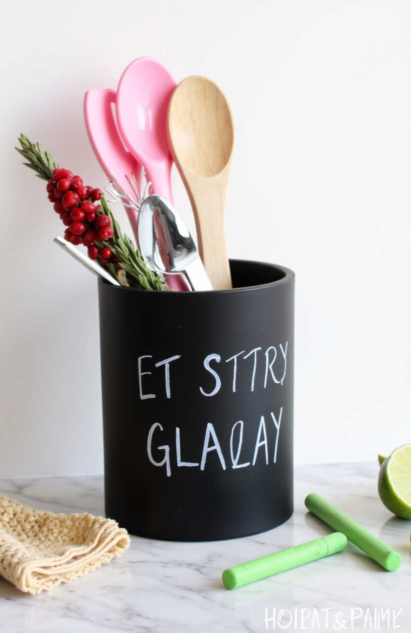 Combine functionality with creativity using a chalkboard utensil holder. It allows you to label or doodle, adding a personal touch daily.