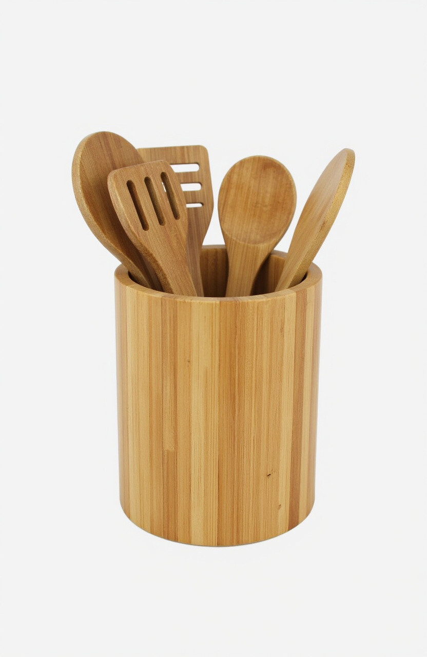 For the environmentally conscious, a bamboo utensil holder is a perfect choice. It’s sustainable, lightweight, and has a natural aesthetic.