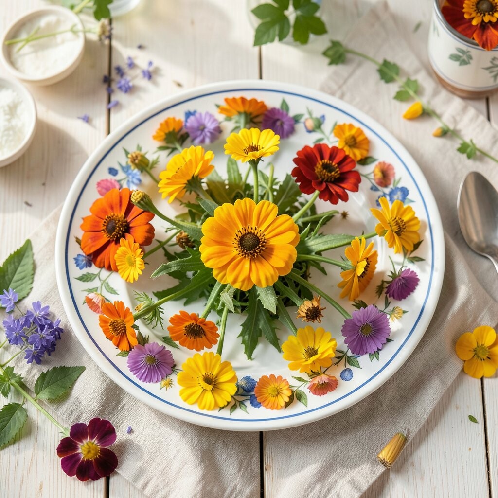 Nasturtium plates are as cheerful as a sunlit garden, with vivid oranges and yellows. They bring warmth and joy to any meal.