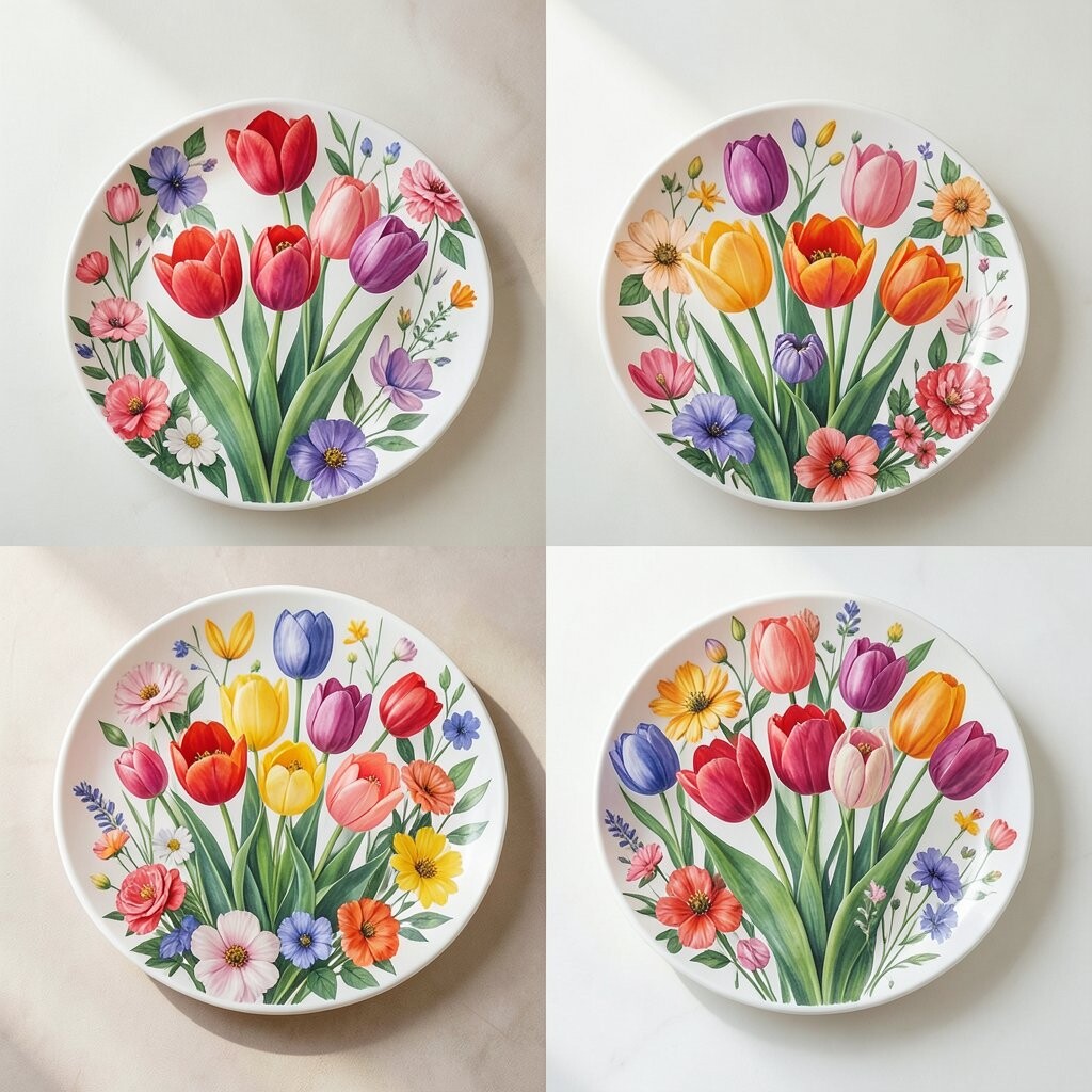 Tulip plates bring a fresh and lively feel to your table. Their bright reds, yellows, and pinks are a delightful addition to any meal.