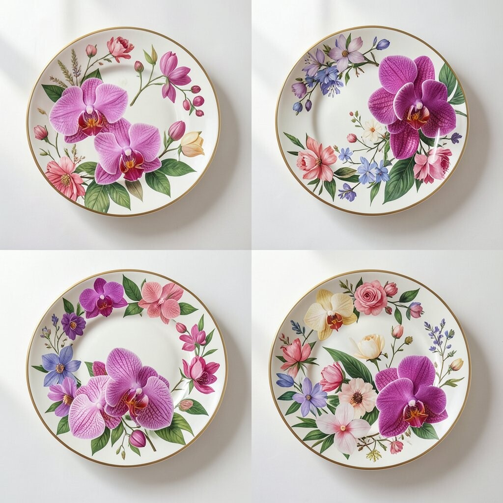Orchid plates bring an exotic elegance to your table. Their unique shapes and colors can make any meal feel special.