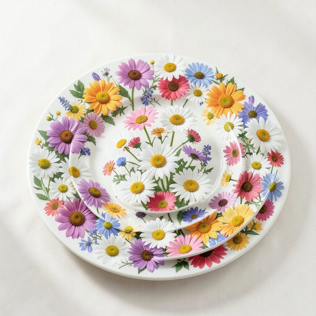 Daisy plates, with their simple and cheerful design, bring a smile to everyone’s face. Their bright whites and yellows are reminiscent of a sunny day.