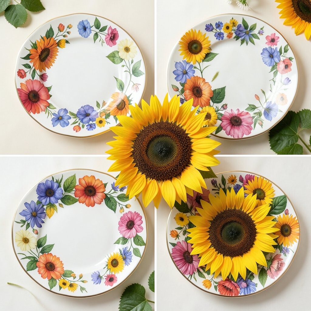 Bright and cheerful, sunflower-themed plates add a touch of sunshine to any meal. The vibrant yellows are sure to brighten even the cloudiest day.