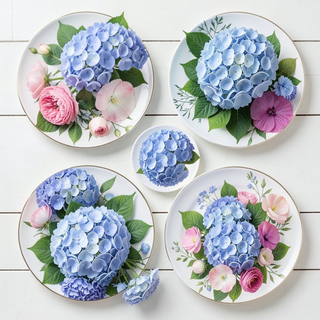 The calming hues of blue hydrangeas can transform any table. These plates often feature intricate patterns that mimic the lush blooms of hydrangea flowers.